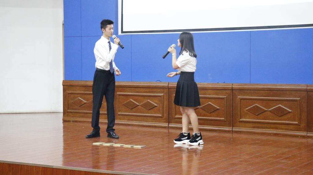 紧接着,团委学生会主席团、部长团、大艺团、体育团依次上台发言,分别从团委学生会各部门的特点、工作职能、特色活动、招新要求等方面向2019级新生进行了详细介绍。随后,长笛小提琴合奏《way back home》重磅上演,笛声空灵悠扬、小提琴婉转悠长,西洋乐器与东方音乐火花四溢,绘就一篇绝美华章,让现场的观众痴迷不已。一首《记得》让全场沦陷,潘岩、程艺青同学饱含深情,带领同学品尝了青春的苦涩。最后,卡通色情