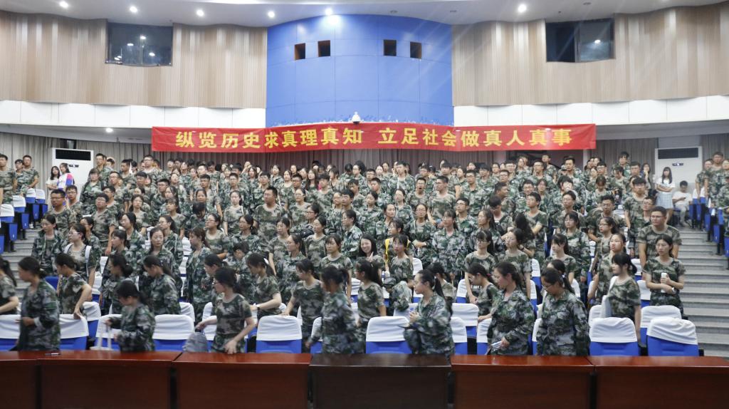 以暖场快闪视频为引,激情洋溢的开场舞《solo》拉开了见面会的序幕,营造了青春洋溢、活力满满的氛围,缓解了新生一天的训练所带来的疲惫。“己亥之秋,盛世华年。喜迎中华人民共和国成立70年华诞,我们也迎来了2019级的新生们,卡通色情