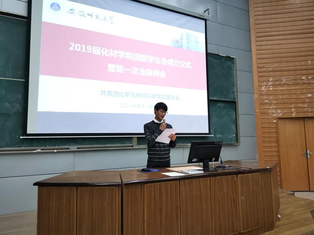 团委学生会全体成员共同签署了《任职承诺书》并进行集体宣誓,引导广大成员明确工作职责,强化责任意识。部员代表梅凯毓同学的发言将会议推向了新的高潮,他表明了自己作为一名大一新生在团委学生会工作期间的所学所感,并借此机会畅谈了今后工作的目标。会议结束后,全体成员进行了合影留念。