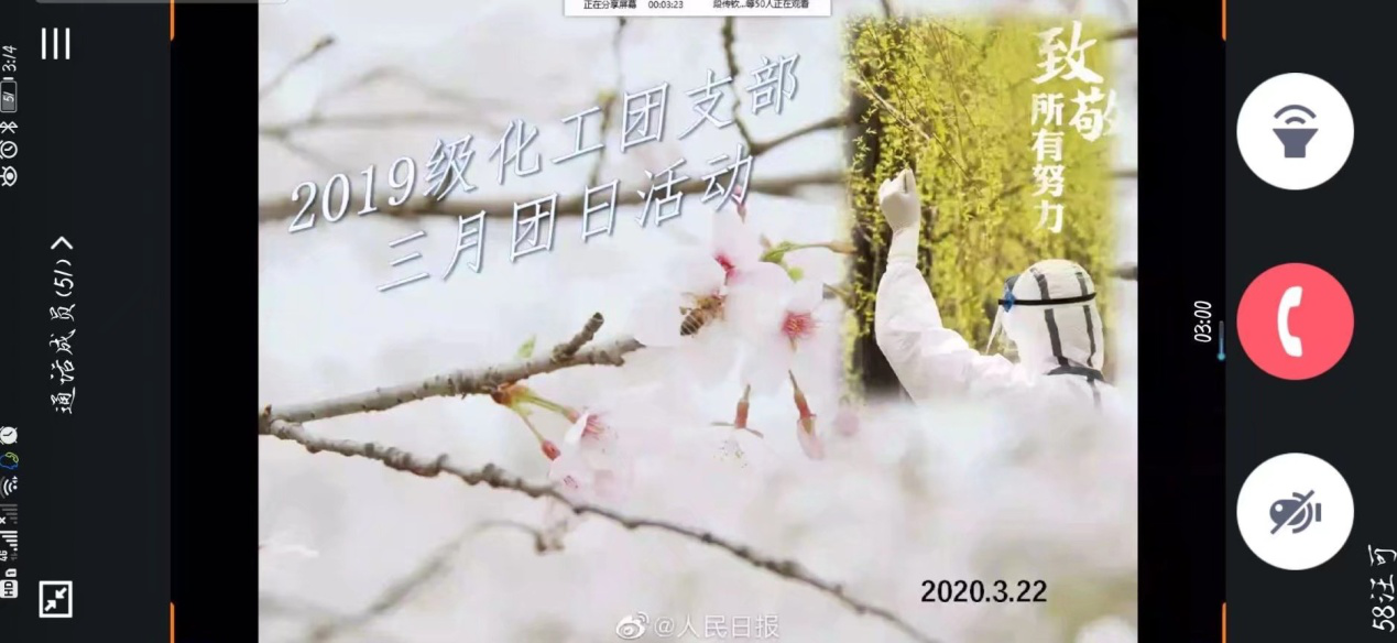 为深入贯彻学习《习近平总书记给北京大学援鄂医疗队全体“90后”党员的回信》精神和本次“战疫”英雄们的优秀品质。3月22日下午,2019级化学工程与工艺专业团支部通过网络媒体,带领本班全体同学开展了“众志成城,共克时艰”主题线上团日活动。