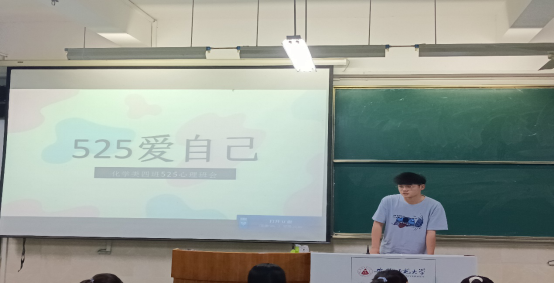 朱言德)承接校级“525大学生心理健康教育月”活动,为进一步加强我班学生心理健康教育工作,宣传普及心理健康知识,有效预防突发性心理危机事件,引导学生形成正确的心理健康观念,保持理性平和、健康向上、乐观开朗的心理状态,5月23日晚,2020级化学类四班在一号楼308教室举办了主题为“525爱自己”的心理健康班会。班会由本班心理健康委员朱言德主持召开。