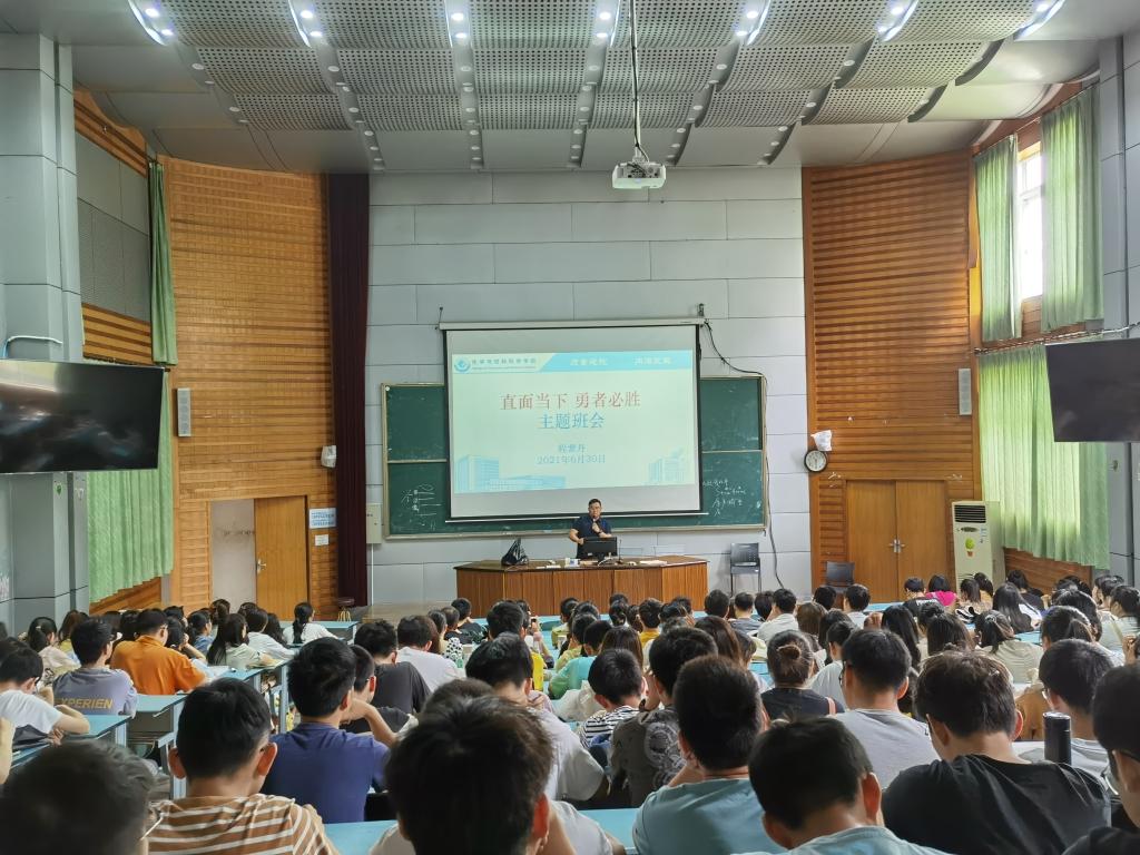 龚昀晗)6月30日上午十点半,程紫丹老师在2010105教室召开“直面当下,勇者必胜”主题班会,班会主要围绕“直面学业”、“直面考试”、“直面未来”、“直面内心”四部分内容展开,化学(师范)、化学(非师范)、化学工程与工艺三个专业共同参加本次班会。