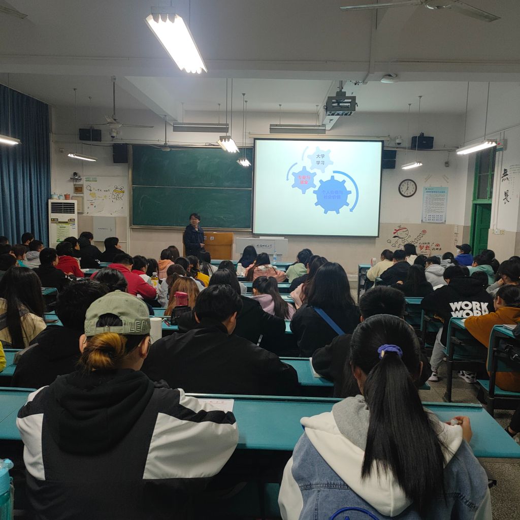 在现场答疑互动环节,同学们积极提问,崔老师解答了同学们在专业认同、专业前景、学习方法等方面的疑惑,为同学们指明了大学目标、毕业目标的具体方向。