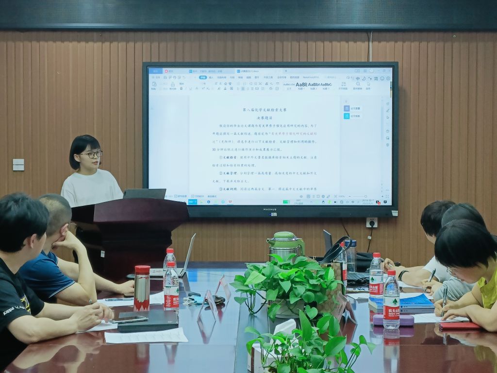 团委素质拓展部主办,学院化学文献检索课程授课教师李一梅、罗时忠、王伟智、卓淑娟、王银玲老师担任评委,参与本次大赛的还有部分2019级、2020级学生代表。