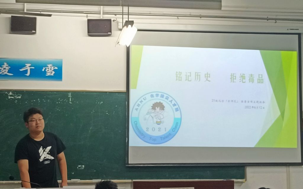 盛莹)为进一步加强高校学生毒品预防教育,丰富学校禁毒教育形式,有效防范毒品滥用,科学普及禁毒知识,教育引导广大青年学生珍爱生命、远离毒品,同时动员广大学生积极参与禁毒斗争,6月12日,2021级拔尖人才班在行知楼7号楼202教室开展禁毒宣传主题班会,班会由安全委员王一平主持。