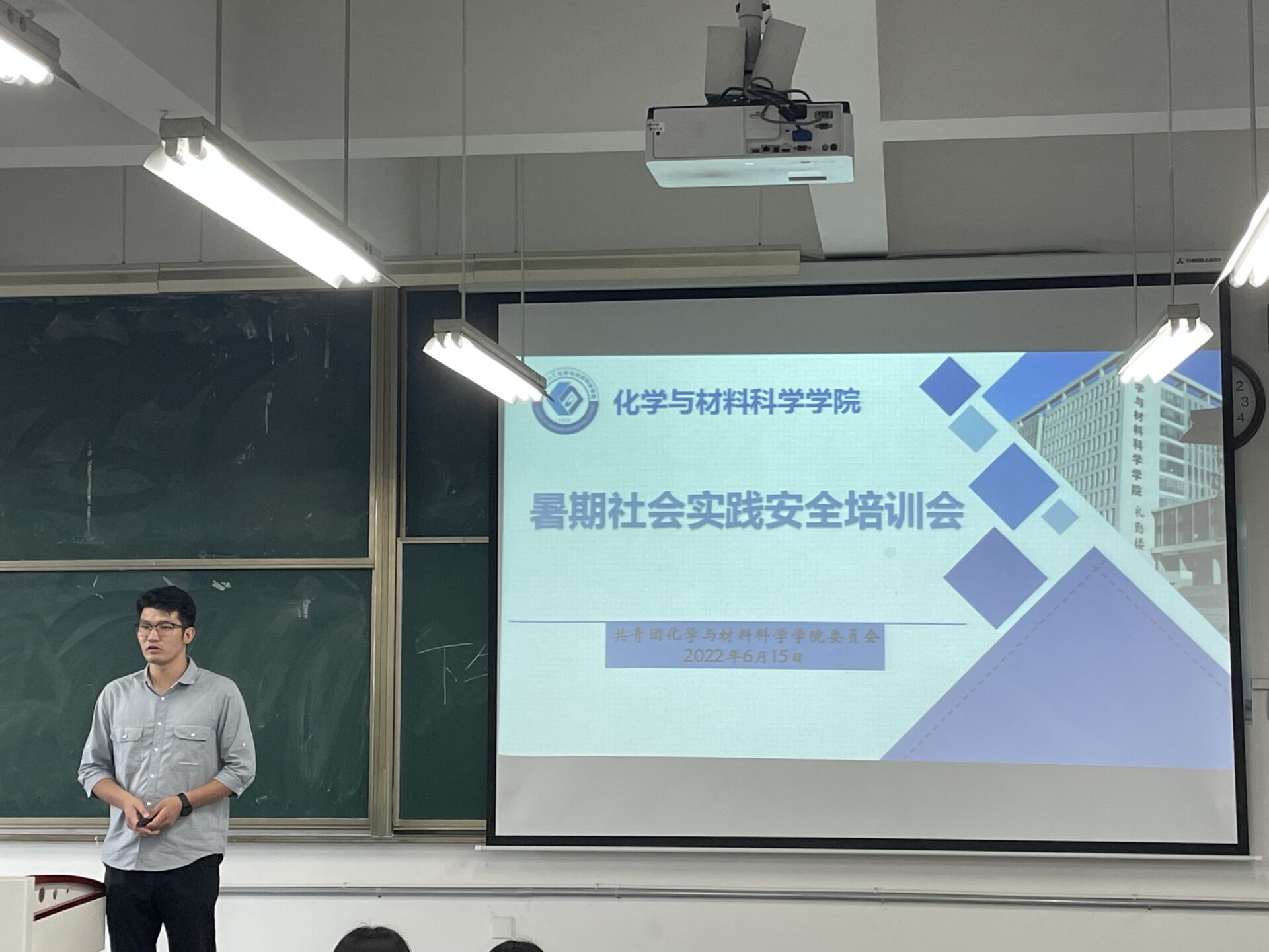 为保障暑期社会实践各团队的自身安全,落实好责任,6月15日下午3点,学院于教学楼2070201教室举行暑期社会实践安全培训会,2021级辅导员梅冠东出席本次会议,各实践团队队长及安全员参加会议。会上,为保障在疫情防控的形势之下顺利开展暑期社会实践,梅冠东从交通安全,住宿安全,饮食安全等方面进行了详细介绍,同时还强调了要认真实行“一日一报”安全制度;加强自身安全保障,提高防范意识,杜绝涉险行为,遇到突发情况要及时汇报团队指导老师。