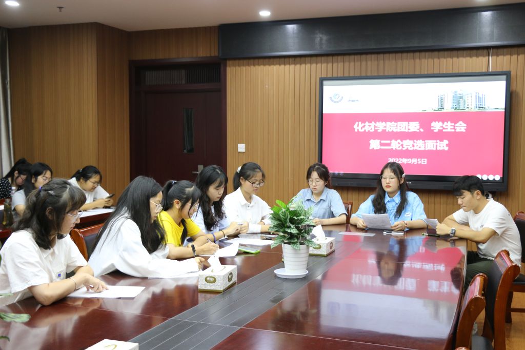 团委、学生会于9月5日举行团委、学生会第二轮竞选面试,院团委书记梅冠东、团委副书记陶勇、学院专兼职辅导员及上一任主席团、部长出席本次会议。