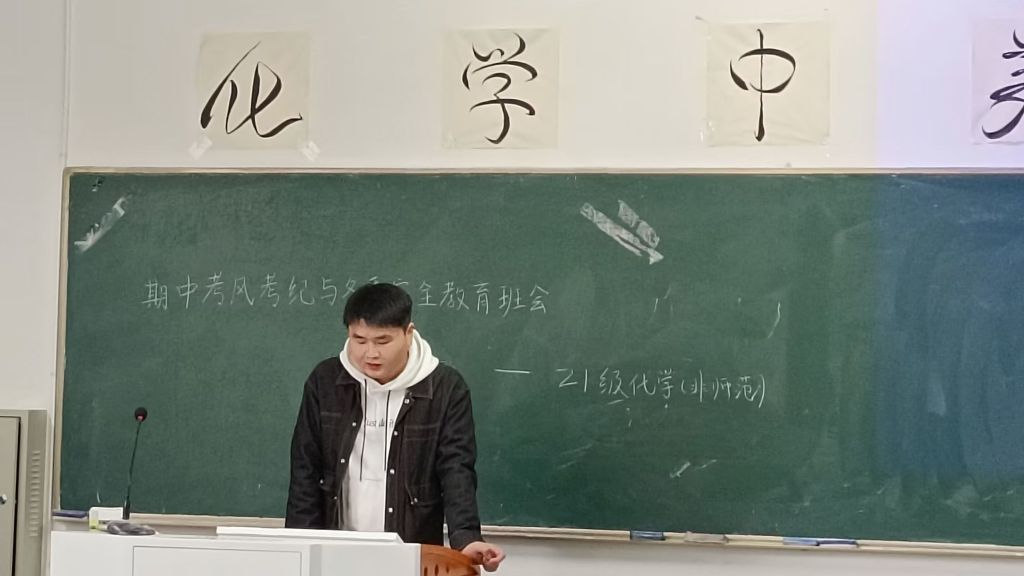 杨妍、陶勇)为缓解备考压力,调动同学们期中考试周学习积极性,2022年10月24日-26日,辅导员陶勇老师分别为21化师、化非专业全体同学开展期中考风考纪暨冬季安全教育主题班会。