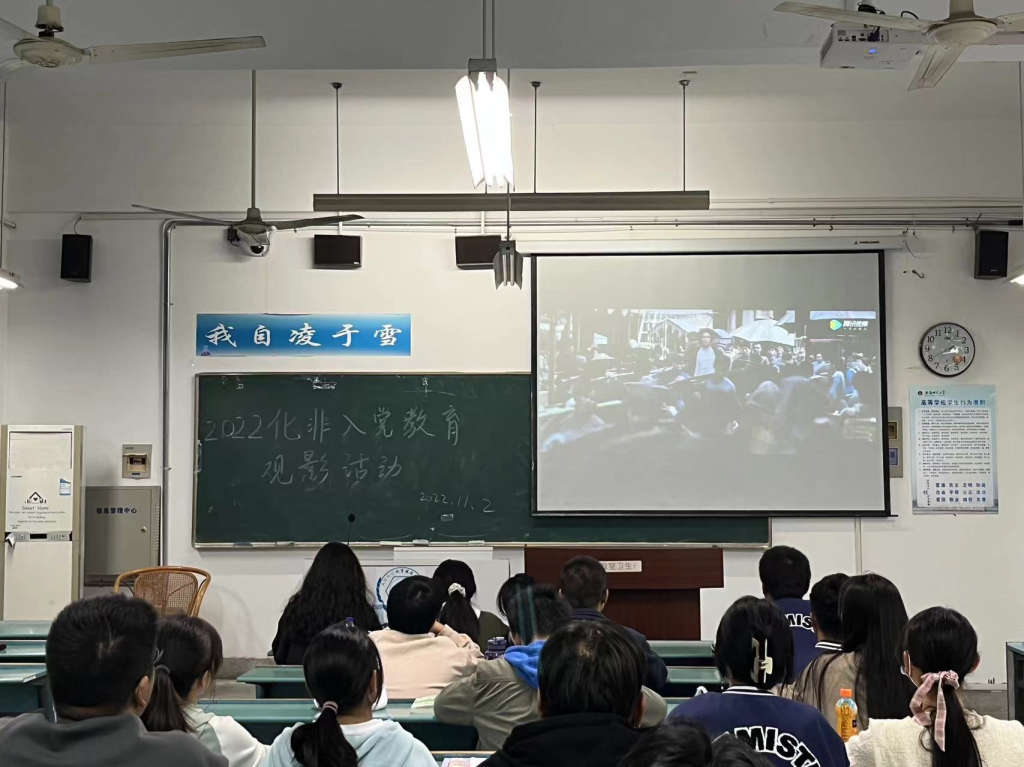 毛雨嫣)为加强对学生的政治引领和思想教育,引导青年大学生传承红色基因、赓续红色血脉,强化理想信念、汲取奋进力量,缅怀老一辈革命先烈崇高的爱国情怀,2022年11月2日晚,2022级化学(师范)、化学(拔尖人才班)在一号楼302、303教室,七号楼202教室集中观影了红色电影《古田军号》,重温那段峥嵘岁月中老一辈革命家的非凡经历。