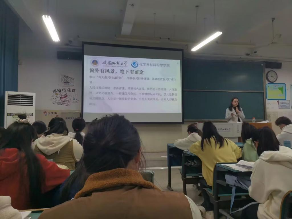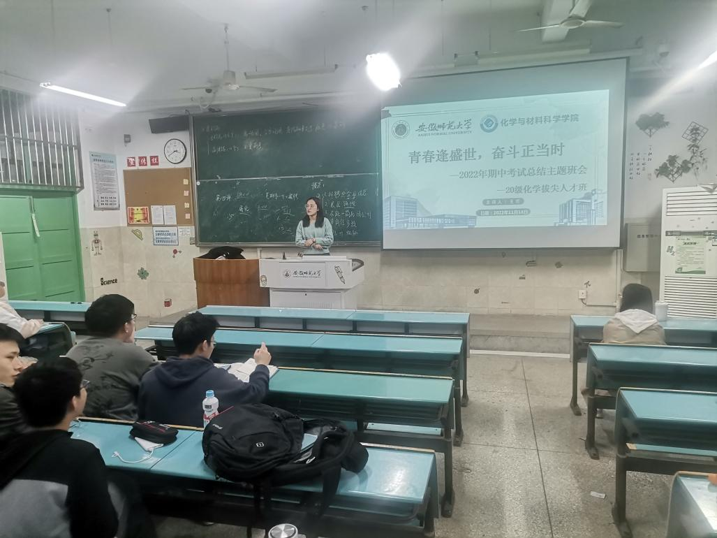 王念祖、王芳)为营造浓郁的班风学风,掌握正确的学习方法,帮助学生养成良好的学习习惯,引导学生根据学科、专业特色响应我校的学科振兴和基础教育振兴“两大振兴行动计划”,辅导员王芳老师在2022年11月15日、17日及18日先后于行政楼2070201、2010502和2010303教室,相继为2020级化学师范、应用化学和化学拔尖人才班召开了“越努力越幸运”、“青春逢盛世,青春正当时”为主题的学风建设暨期中考试分析总结班会。