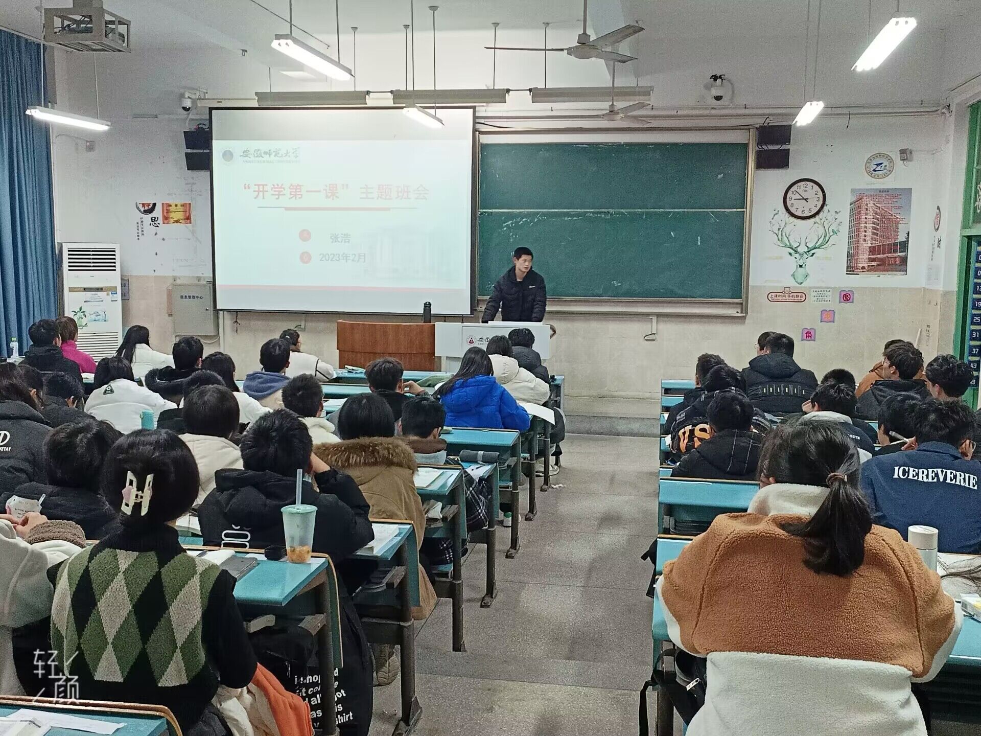本次主题班会上,张浩围绕“新学期,新面貌,新憧憬”向班级同学提出了新学期的一系列要求,号召全体同学学好一堂“思政课”,认真学习宣传贯彻党的二十大精神;学好一堂“劳动课”,保持教室、寝室卫生干净整洁;学好一堂“安全课”,提高人身、财产、心理、用电安全意识;学好一堂“法制课”,认真研学《学生手册》;学好一堂“疫情防控课”,严格落实每日健康监测。