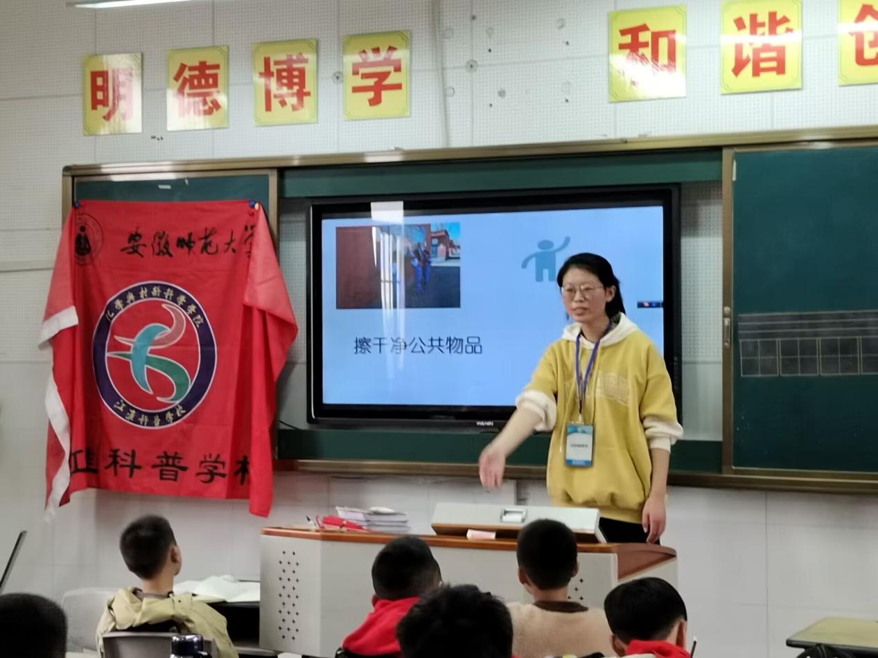 2023年3月8日下午,江淮部员带着沉甸甸的实验物品,怀揣着紧张而又兴奋的心情,踏入了火龙岗中心学校。小朋友们悦耳的笑声充斥着校园,活泼可爱的身影遍布各个角落。随着上课铃声的响起,志愿科普活动拉开了帷幕。首先,刘璐同学站在讲台上阐述着雷锋同志的一生的重要事迹,宣传雷锋精神的时代意义和学雷锋的先进典型。通过讲解使小朋友们加深了对雷锋精神的认识和理解,促使同学们自觉主动地在学习和生活中时刻关注雷锋精神,长此以往,形成学雷锋的良好氛围。