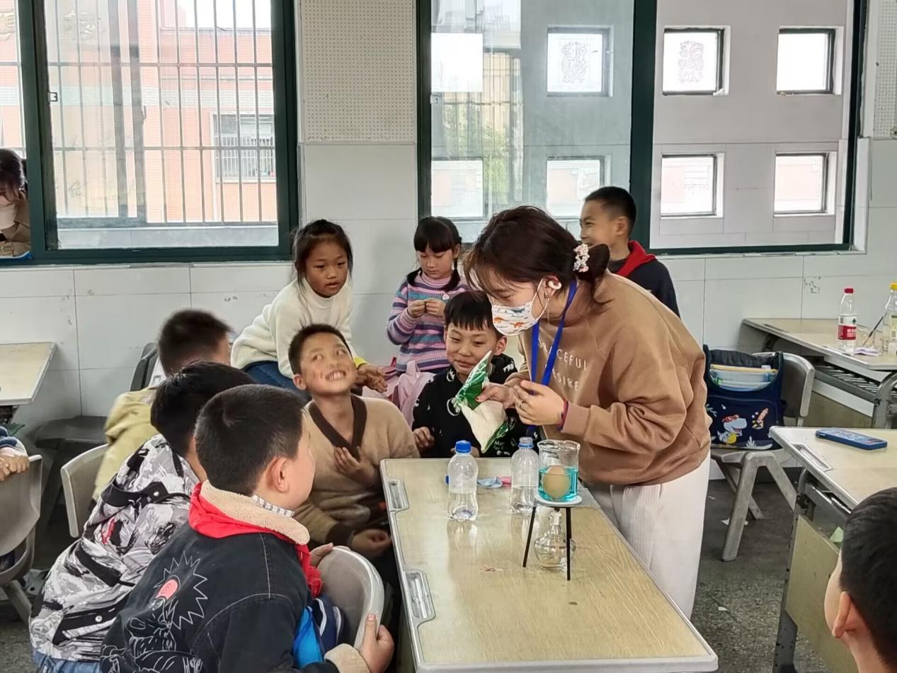 同学们积极地参与到科普课堂当中,踊跃发言,大胆地提出自己的疑问,在有趣的实验现象中积累了丰富的化学知识,部员们也在小朋友们求知的眼神和愉快的笑声中慢慢领略到科普的意义和魅力。