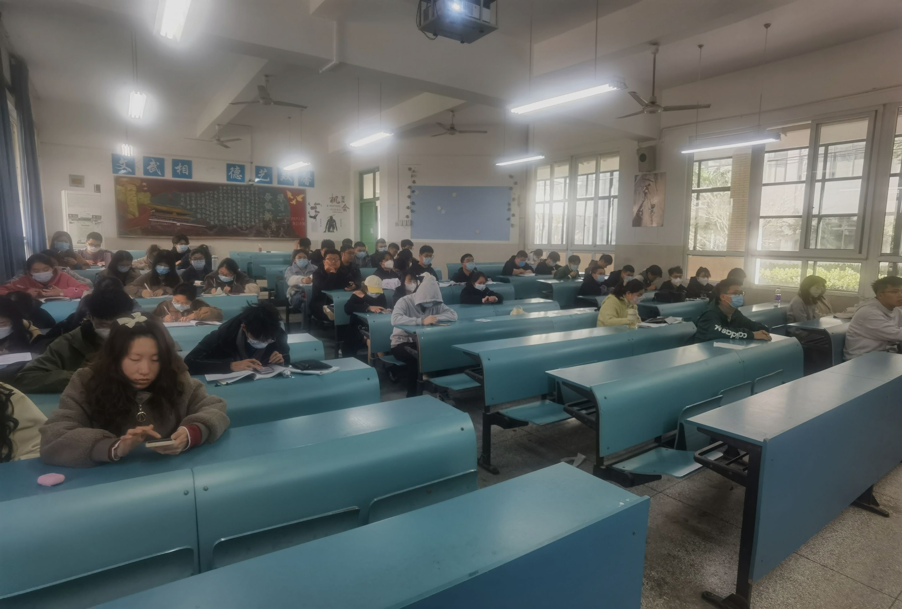 最后,班会围绕着班级学风考风建设展开,辅导员于洪翔着重强调考试态度的重要性以及遵守考试纪律的严肃性,重点带领同学们学习学生手册中的文件《安徽师范大学学生违纪处分规定(修订)》,并通过生动严肃的案例警惕同学们不要抱有侥幸心理,让同学们更加清楚地意识到考试违规违纪的严重性,在面对考试时要端正态度、严格遵守考场纪律。