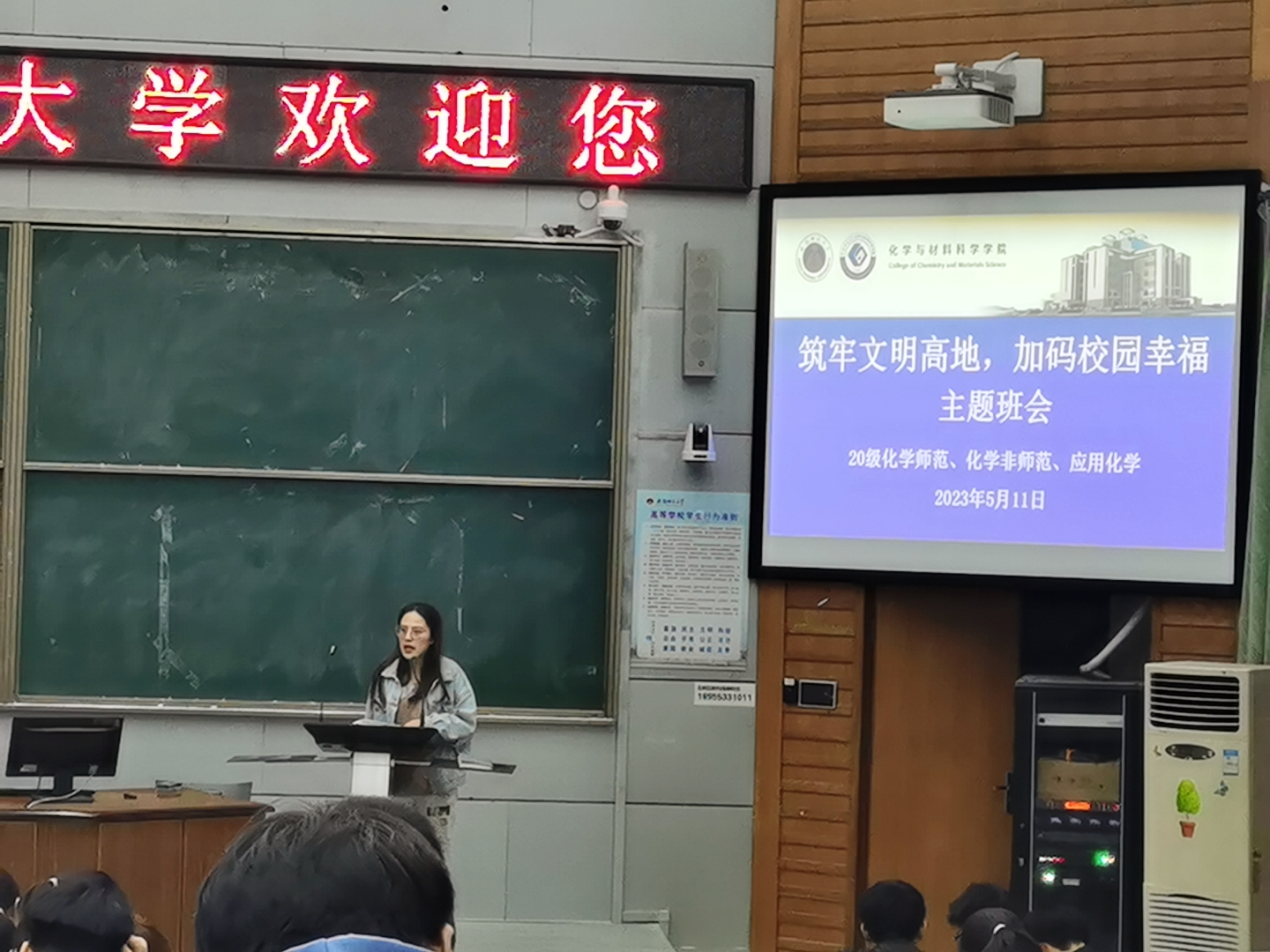 田旭、陶佳佳)为培养学生文明习惯和修身意识的养成,培养当代大学生的诚信和责任担当意识,5月11日,2020级化师、应化和化非班在行知楼2010105教室开展了以“爱师大·共奋进”为主题的“六个文明”教育实践活动和学生资助诚信教育线上线下相结合的主题班会,班会由20级专职辅导员王芳老师主持召开。