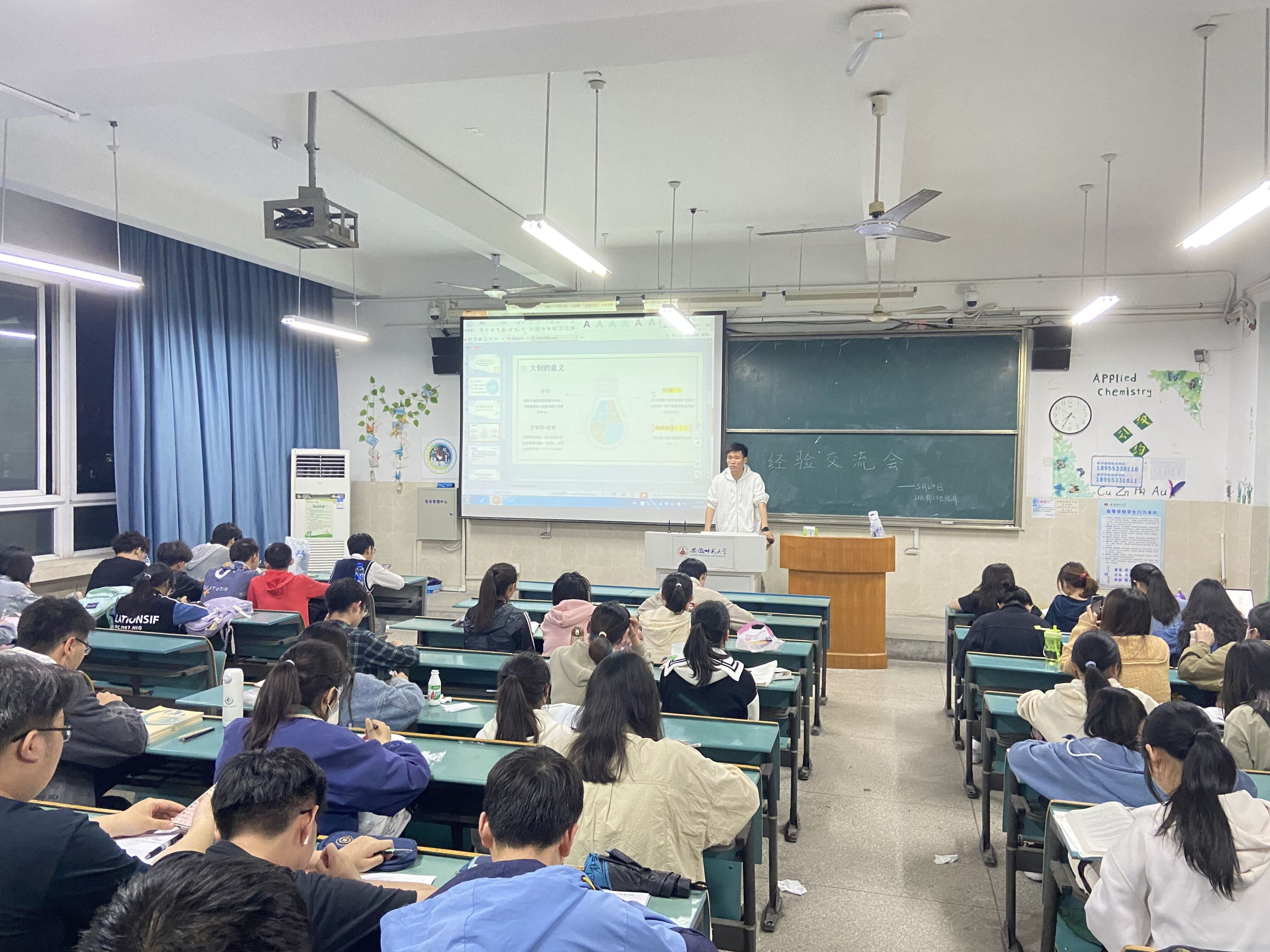 学生对大创的积极性,帮助同学们深入了解大创申报,学习大创开展相关事宜,5月24日晚,2021级化师1班和化非班在2010504教室开展大创经验交流分享会,本次会议邀请了2019级化学非师范王睿和应用化学专业吴泓婧作为分享人。