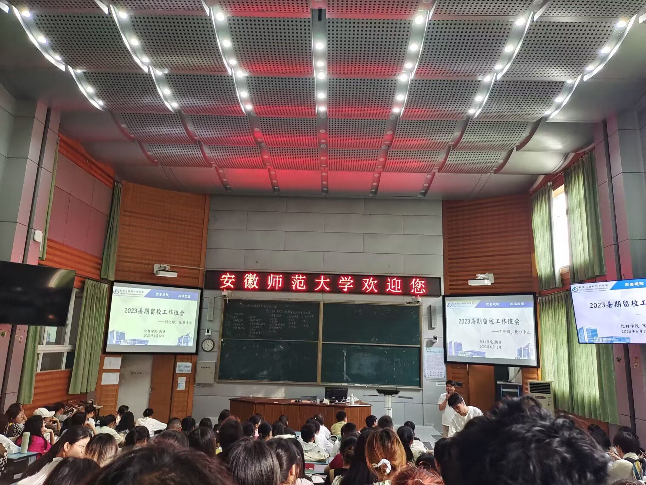 盛莹、陶勇)为做好2023年暑期留校学生安全教育和管理工作,确保暑期各项工作稳妥、有序,营造和谐稳定的校园环境,6月12日下午,2021级化学(师范)、化学(非师范)专业在行知楼2010105教室开展了2023暑期留校工作主题班会,会议由辅导员陶勇主持。
