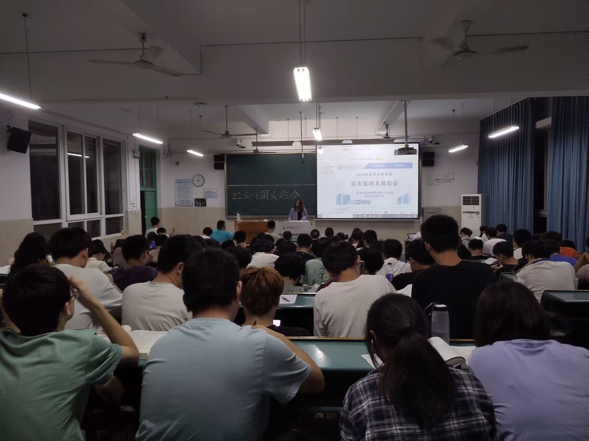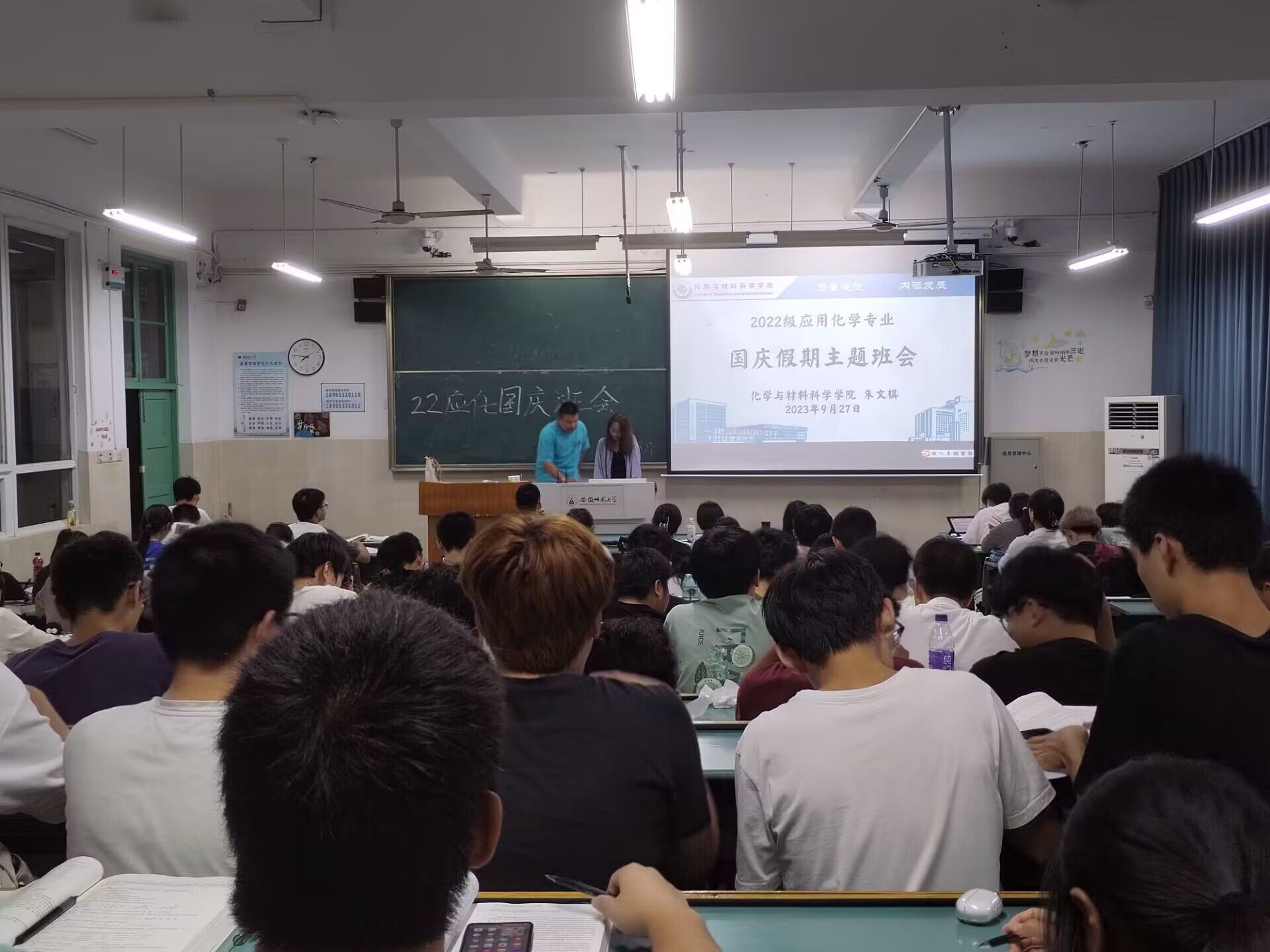 朱文棋、许静媛)为加强国庆、中秋假期安全教育,进一步加强学生的安全意识和自我保护意识,让大家度过一个愉快、健康、安全的假期。9月27日晚在2010508教室2022级应用化学专业召开了假期安全教育主题班会。本次班会由辅导员朱文棋老师主持,100名同学相聚于此与安全同行。