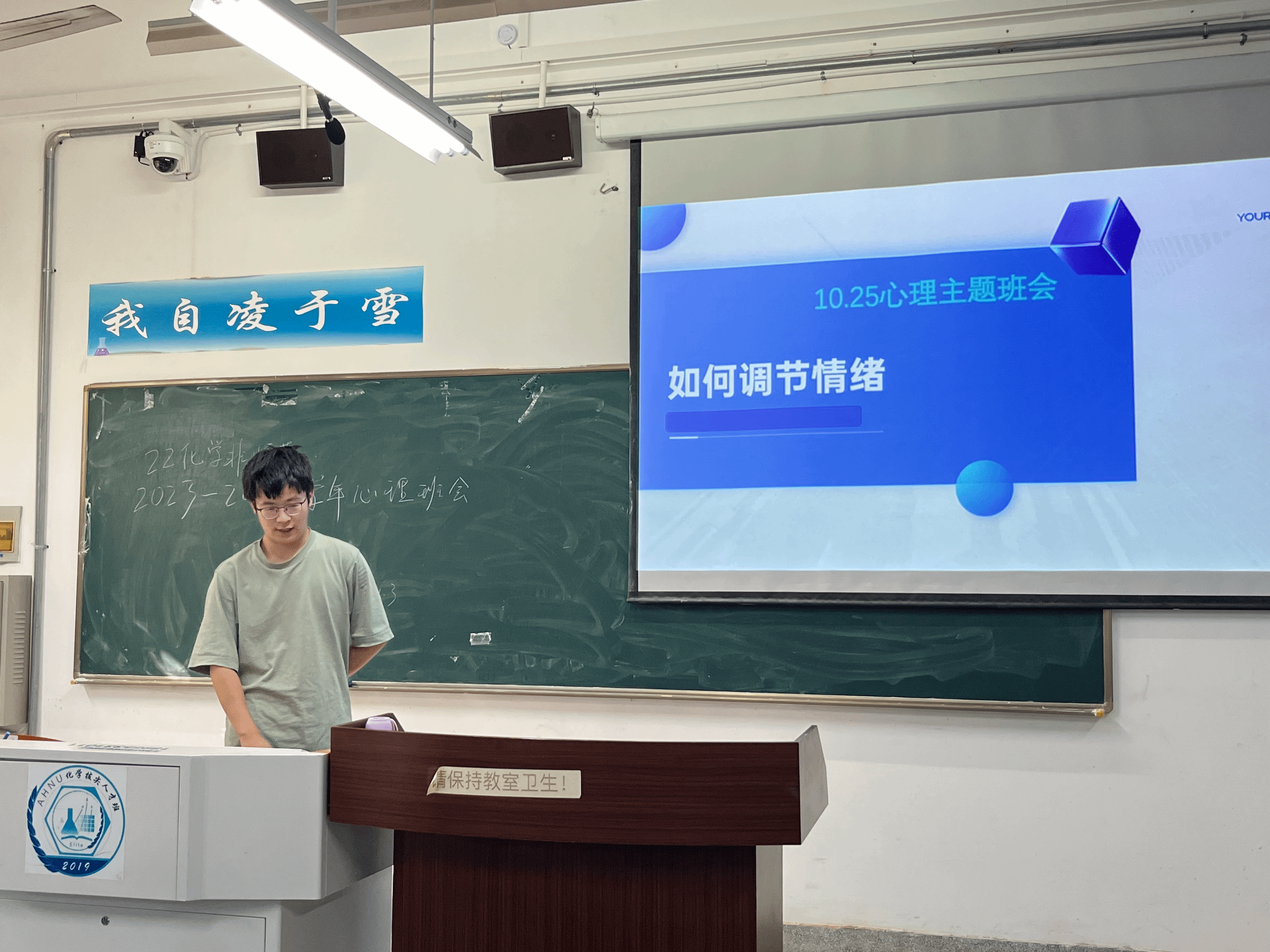有的班级秉持着“走下网络、走出宿舍、走向操场”的理念开展了心理团辅与素质拓展活动,在阳光中挥洒汗水,在分工协作中感受团队的力量,在活动中增强友谊,在运动中体会身心健康的魅力。有的班级开展了内容丰富的主题班会,如2022级化师2班在心理委员韩洁的主持下完成内容丰富的主题班会,包括通过叙述与播放短视频的方式和班级同学共同分析了“当代大学生的主要焦虑”;通过集体观看心理健康教育短视频,共同学习缓解内心焦虑的实用方法;向同学们分享史铁生著写的《病隙碎笔》,共同感悟坚韧心灵的力量。