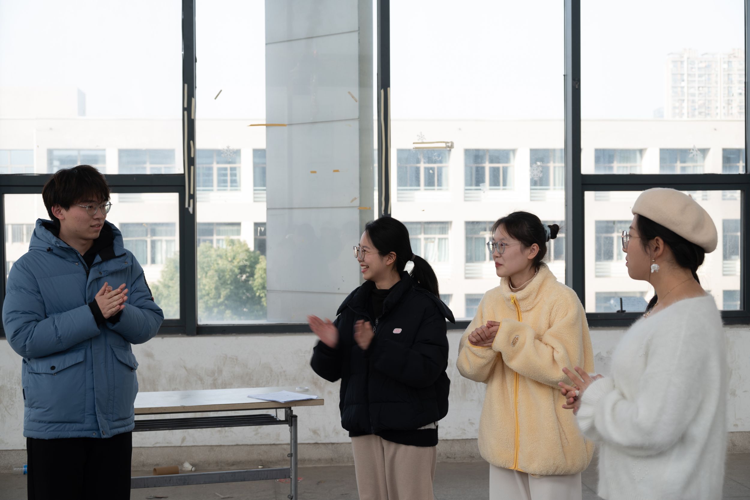 2023级研究生第4团支部于花津校区礼勤楼三楼连廊举办“冬日暖阳”第一届冬季主题团建活动。活动由2023级研究生第4团支部书记张佳欣、2023级学科教学(化学)班长胡欣睿主持,研究生辅导员张薇、2023级学科教学(化学)、2023级课程与教学论(化学)全体研究生参加此次活动。