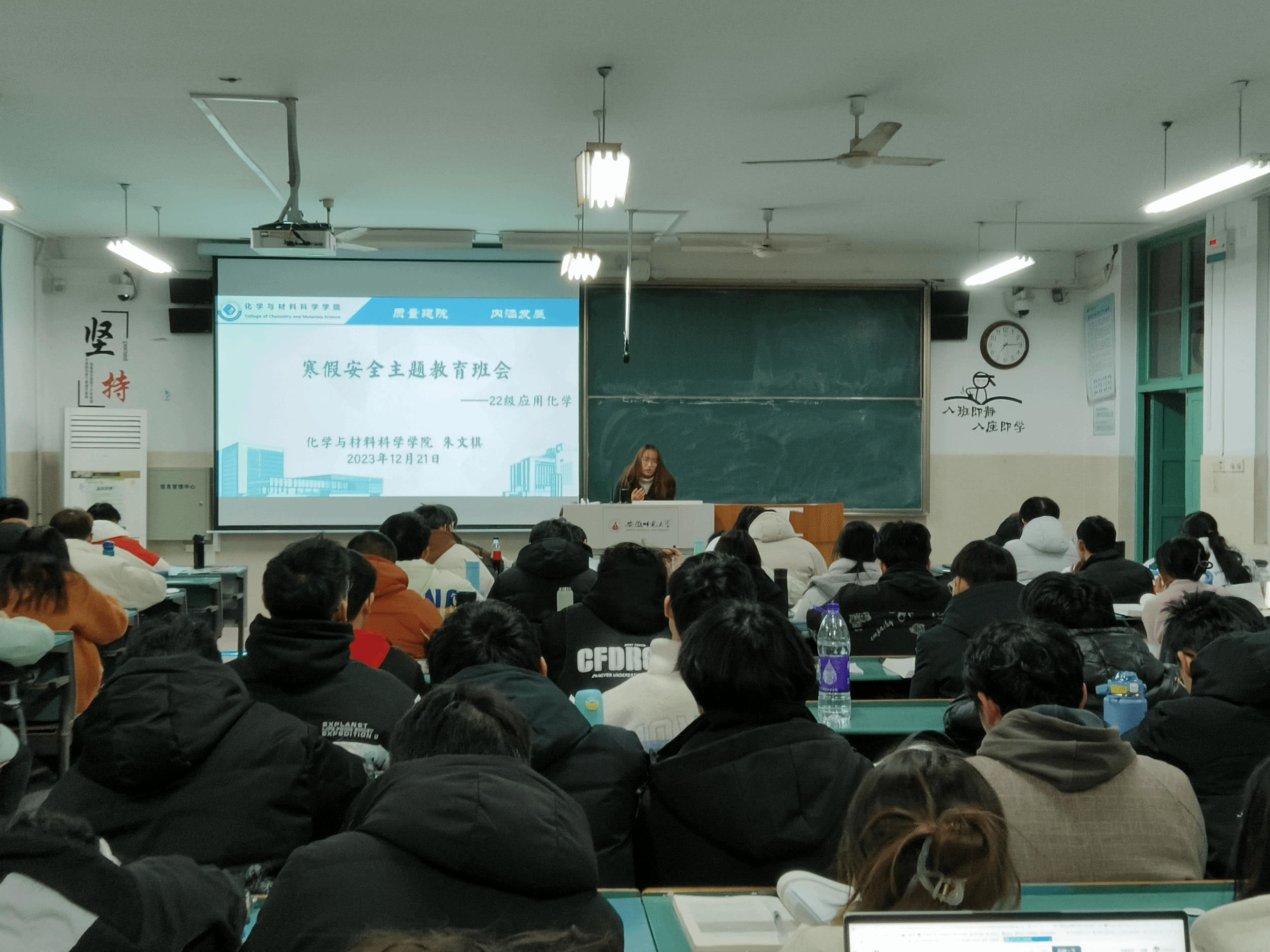 本次班会不仅有朱老师耐心的讲解,班上的同学也积极参与了讨论,部分同学上台讲述了自己对安全教育的认识和想法并分享了自己寒假的计划,为其他同学树立了榜样。通过本次班会,2022级应用化学专业的同学提升了自身安全意识,为丰富且愉快的假期生活奠定了良好的基础。
