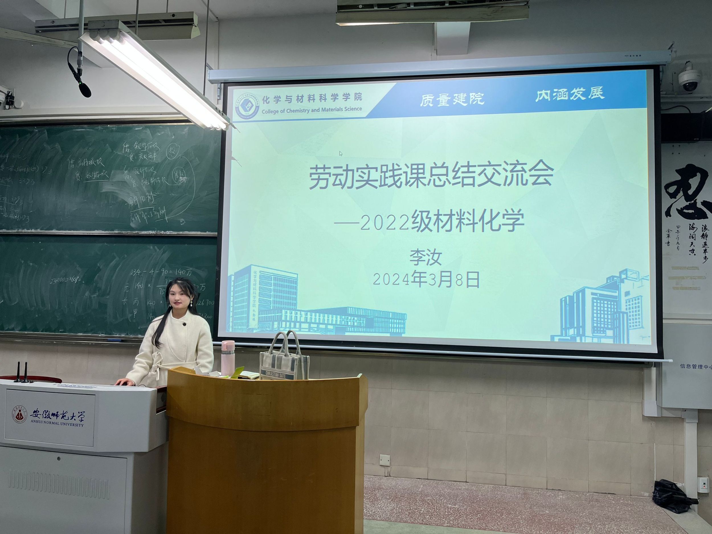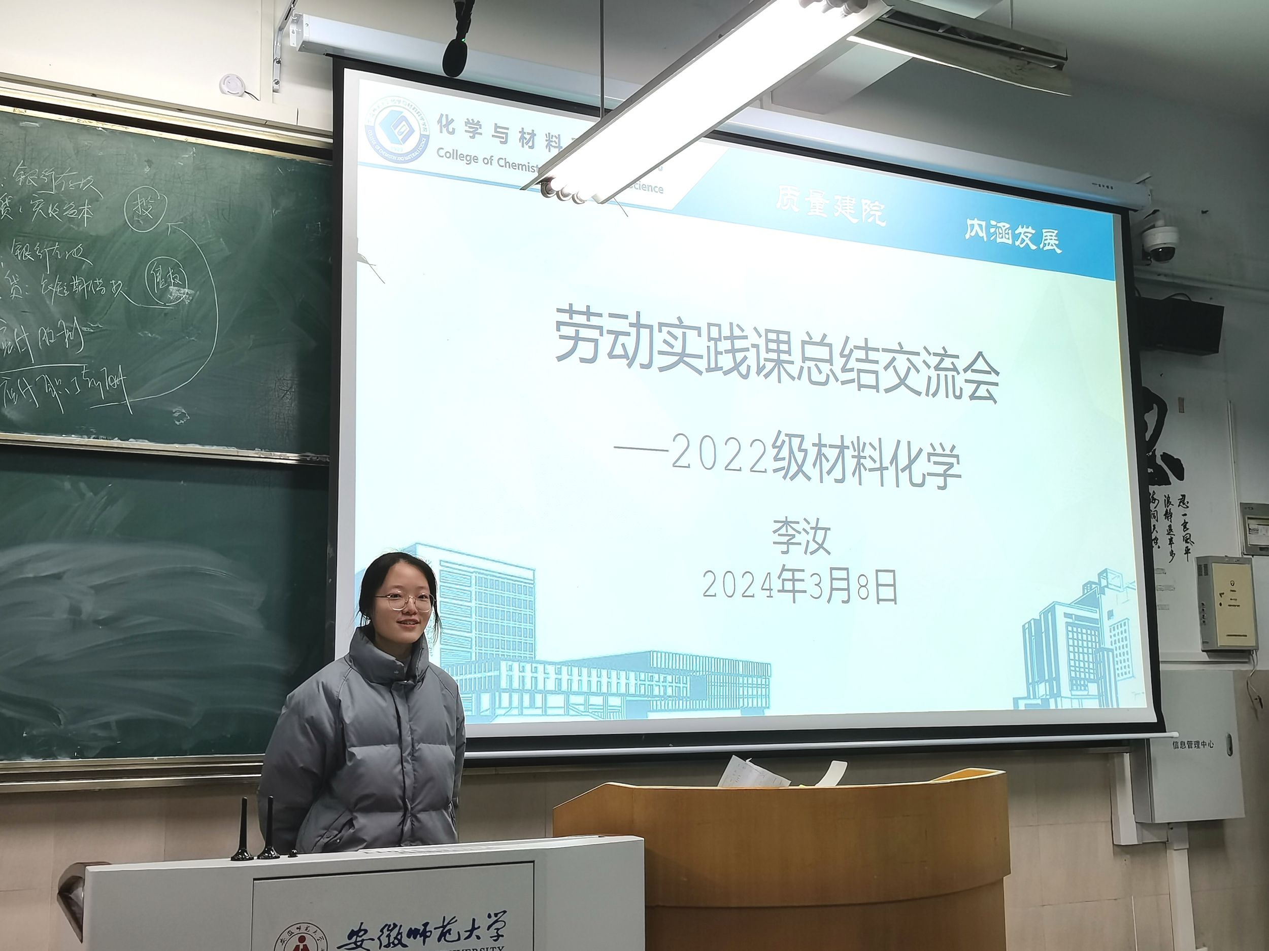 李汝 冷子辰)共筑实践基石、展示劳动风采,2024年3月8日晚,2022级材料化学专业在2020101教室召开了劳动实践课总结交流会。此次交流会由辅导员李汝老师主持,旨在总结3月4日至8日举行的劳动实践周活动,深化学生对劳动实践的认识,并分享实践经验。