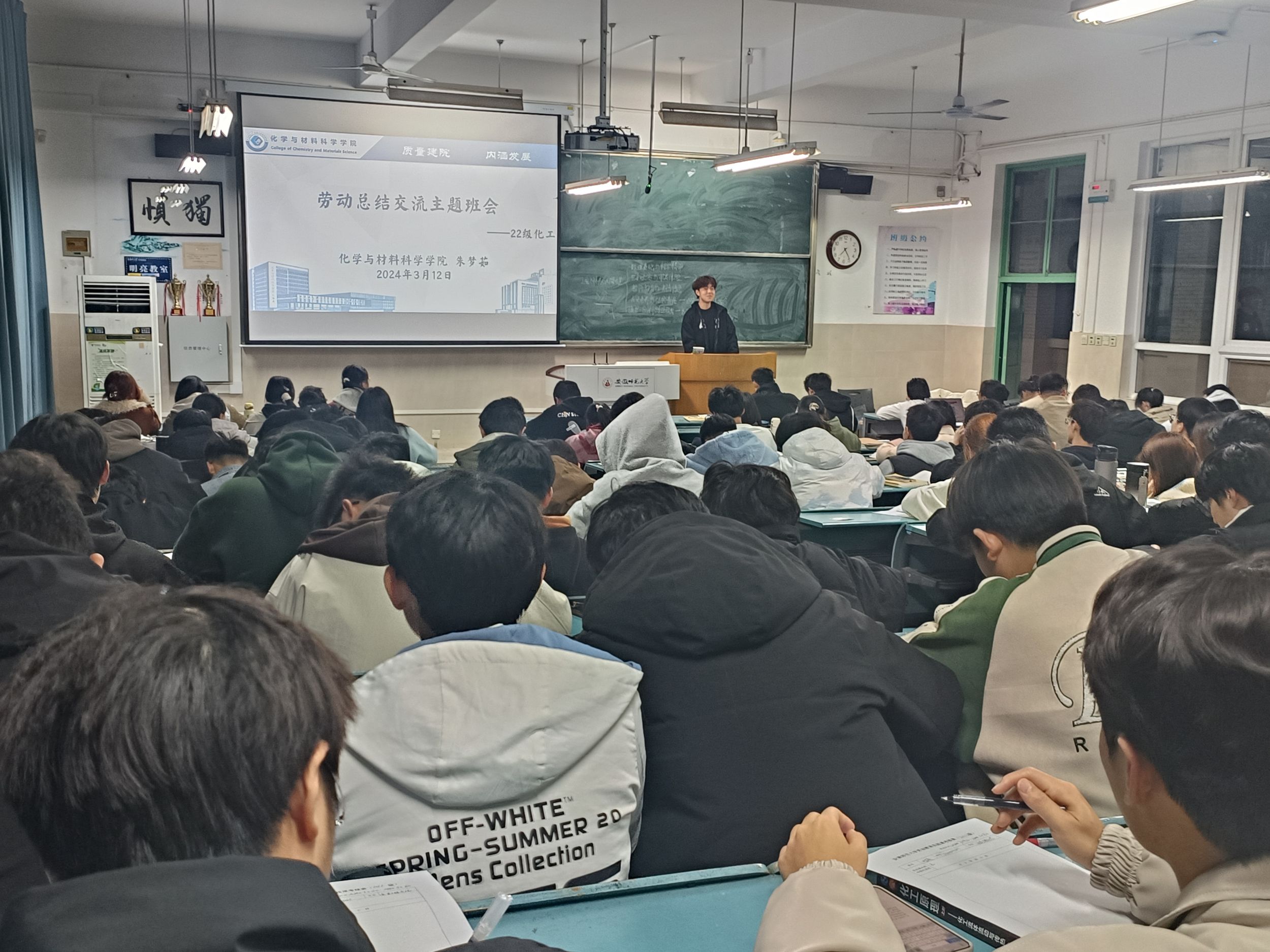 郁妍)劳动为犁,深耕梦想。2024年3月12日晚上七点,2020级化学工程与工艺专业在2号楼302教室召开了劳动总结交流主题班会,班会对为期一周的劳动时光做了详细的记录和回顾,本次会议由辅导员朱梦茹老师主持。