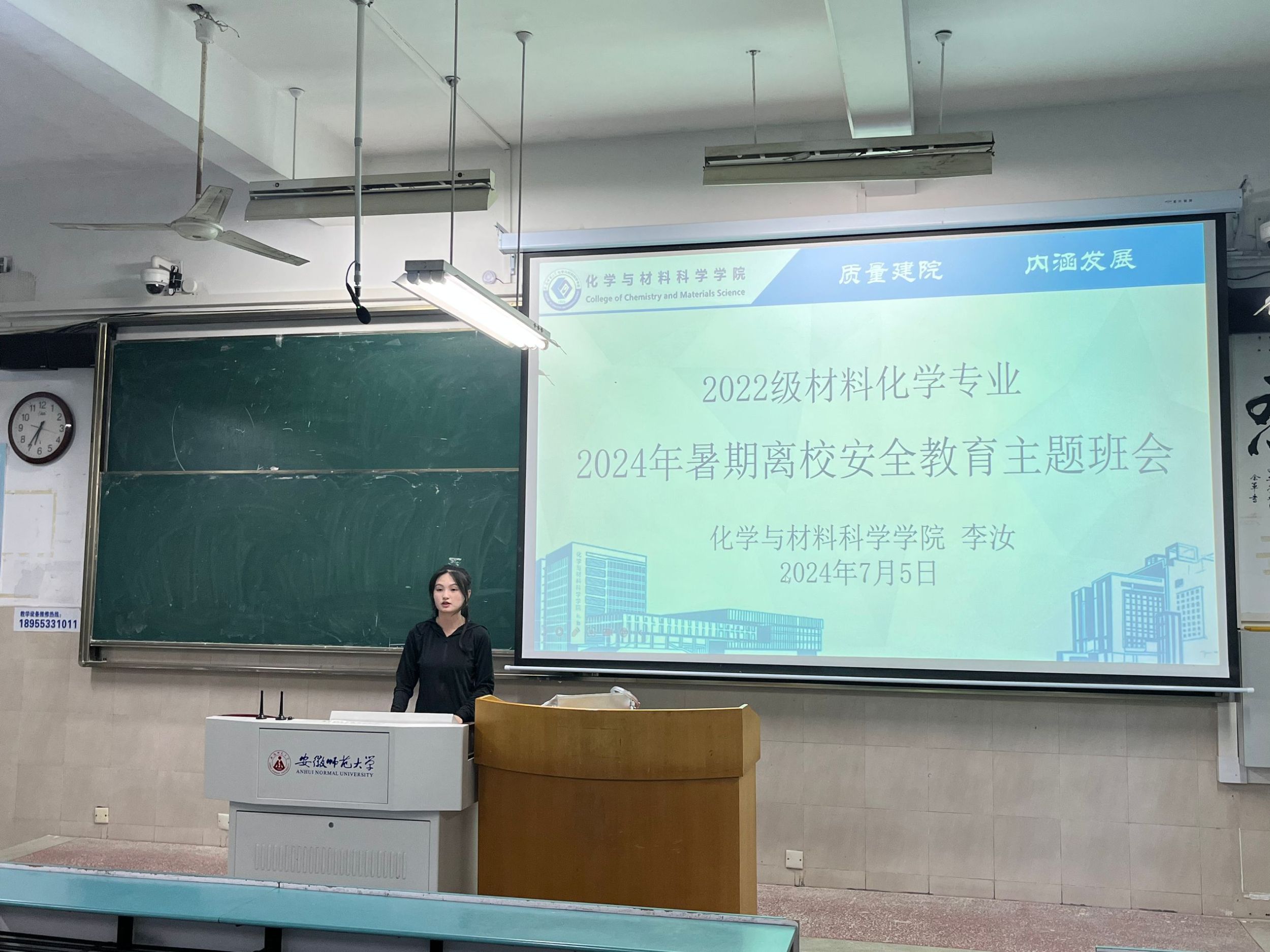 冷子辰、李汝)2022级材料化学专业于7月5日晚在2020101召开了暑期离校暨留校学生安全教育主题班会。本次班会旨在增强学生的安全意识,提高自我保护能力,确保同学们度过一个平安、快乐的暑假。