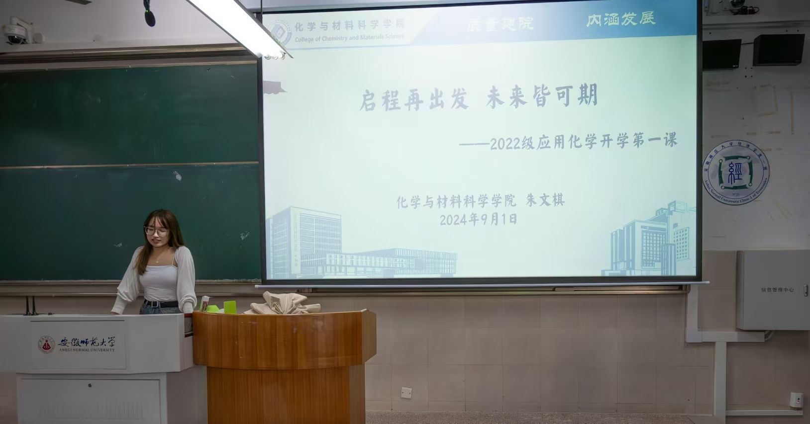 2022级应用化学专业于9月1日下午五点在2020201召开了“启程再出发,未来皆可期”主题班会。本次班会旨在引导同学们树立正确的学习态度,强化纪律意识,以及全面提升安全防范能力,为新一年的大学生活开启一个良好的开端。