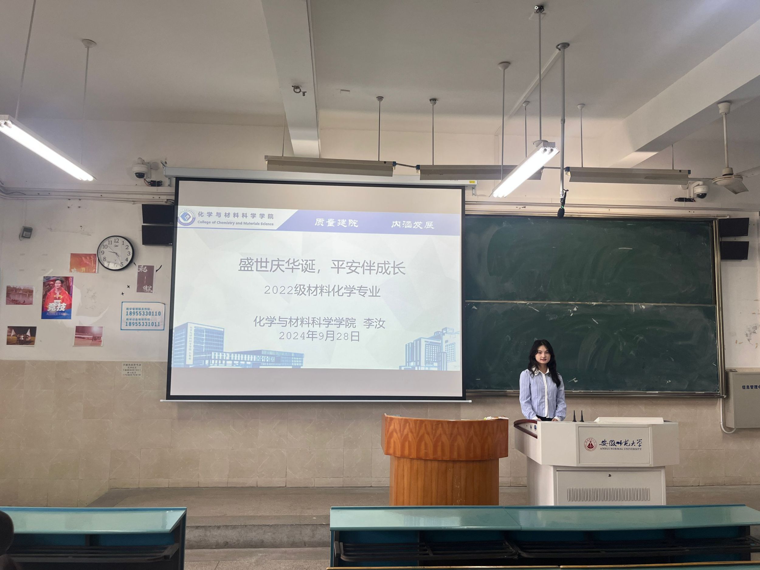 李汝 冷子辰)为增强同学们的安全意识,确保大家度过一个安全、愉快的国庆假期,2022级材料化学专业全体同学于2024年9月28日上午召开了“盛世庆华诞,平安伴成长”主题班会,会议由辅导员李汝主持。