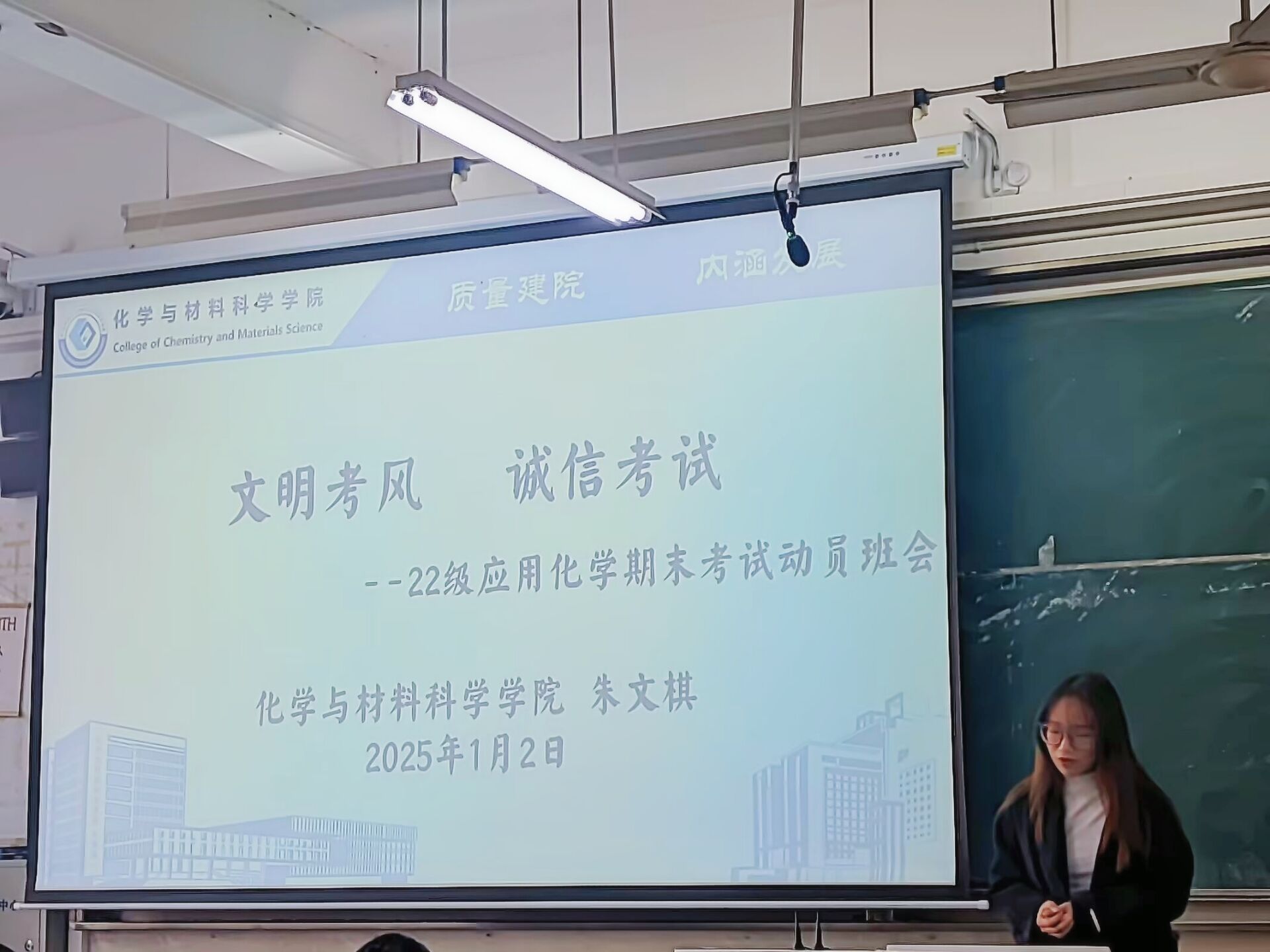 最后,朱老师再次强调了“文明考风、诚信考试”的重要性,并衷心祝愿同学们能够在期末考试中取得优异的成绩。她表示,学院将一如既往地关心和支持同学们的学习和生活,为同学们的成长成才提供有力的保障。