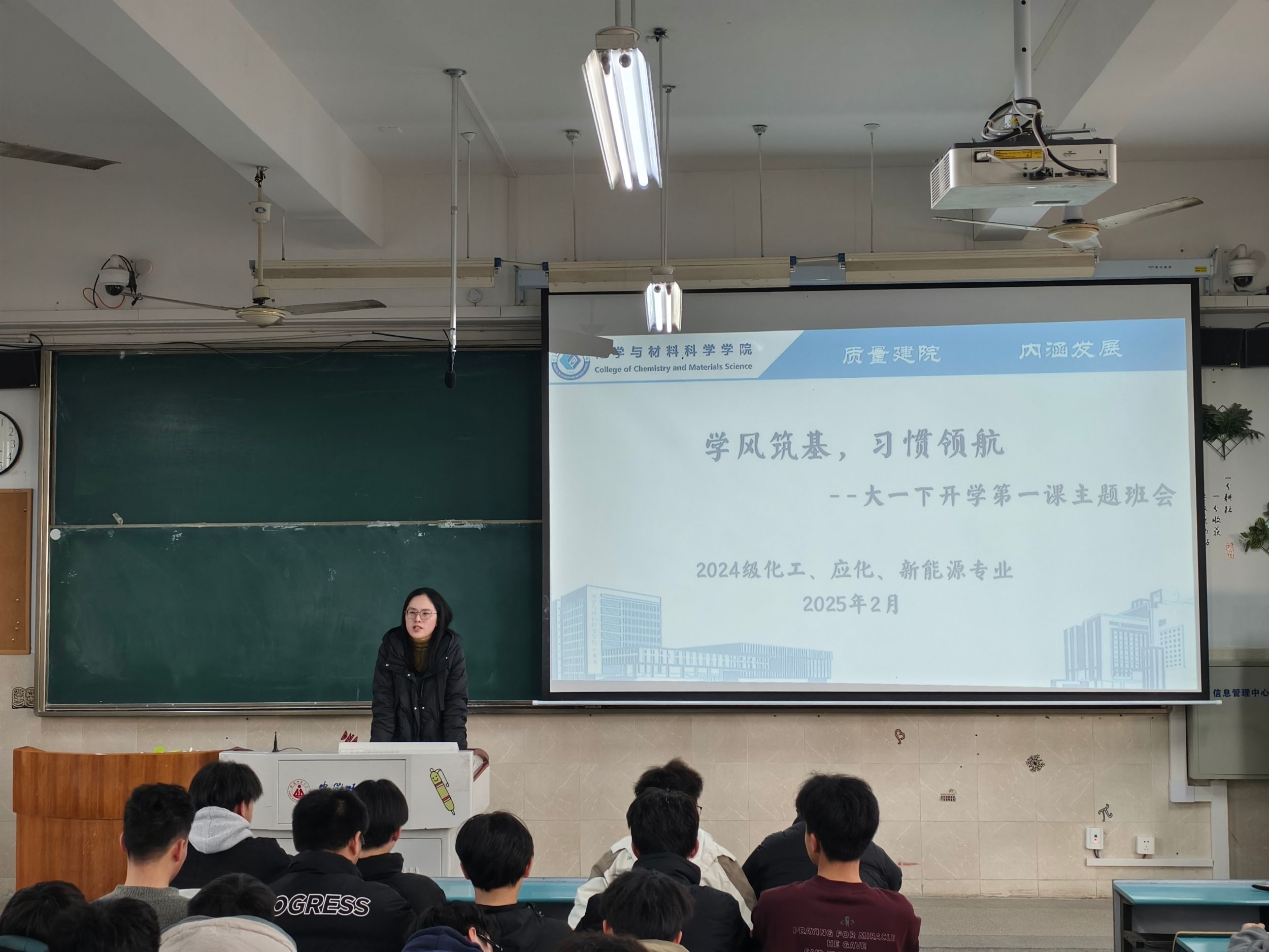 吕欣晨)为助力同学们高效完成假期到校园生活的过渡,现围绕状态调整、目标规划、安全意识强化三大维度,系统推进新学期适应性行动,2月18日-21日下午,辅导员王芳在行知楼2010104教室先后召开了以“学风筑基,习惯领航”为主题的“开学第一课”主题班会,2024级工科专业全体学生参加。