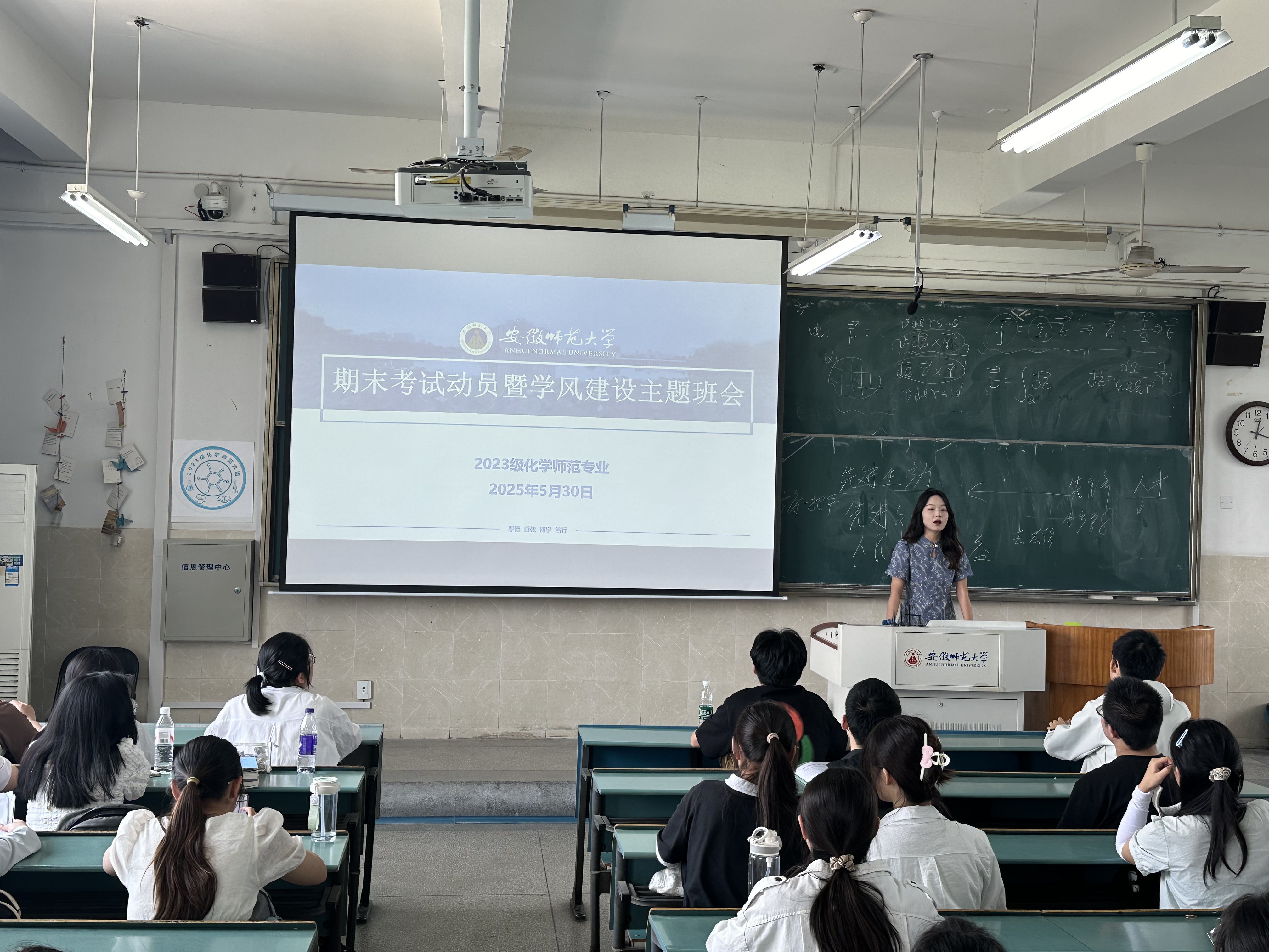 为增强学生安全意识,确保端午假期安全稳定,营造平安祥和的节日氛围,2023级化学师范专业于5月30日成功召开了端午假期安全教育主题班会。本次班会由辅导员王霞主持,全班同学参加。