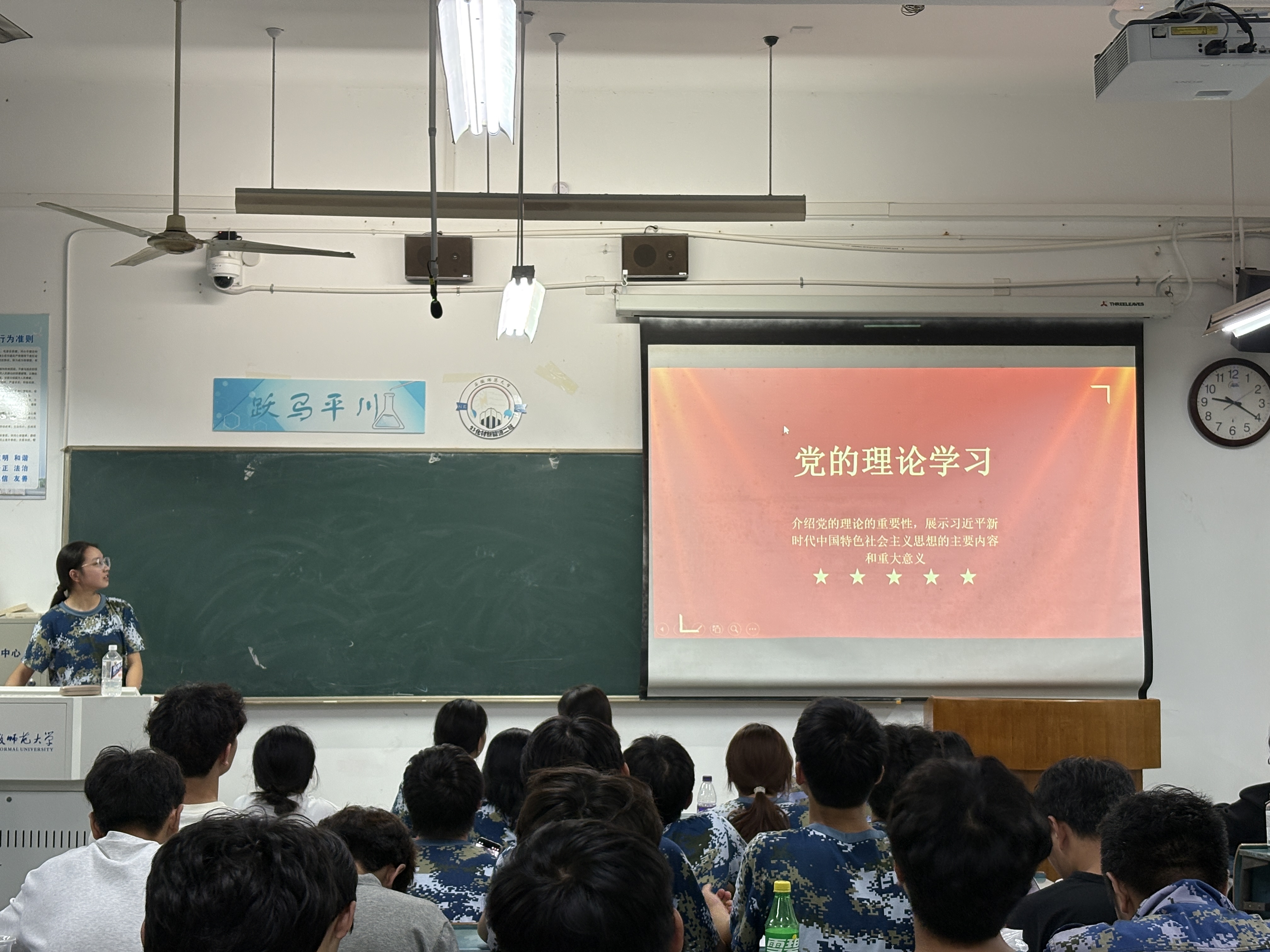 活动伊始,团支书任雨静围绕党的理论学习的深远意义作了系统阐述,详细解读了习近平新时代中国特色社会主义思想的核心要义、理论体系与时代价值,引导同学们进一步坚定理想信念、筑牢思想根基。她强调,作为新时代团员,要自觉加强理论武装,不断提升政治判断力、政治领悟力与政治执行力。