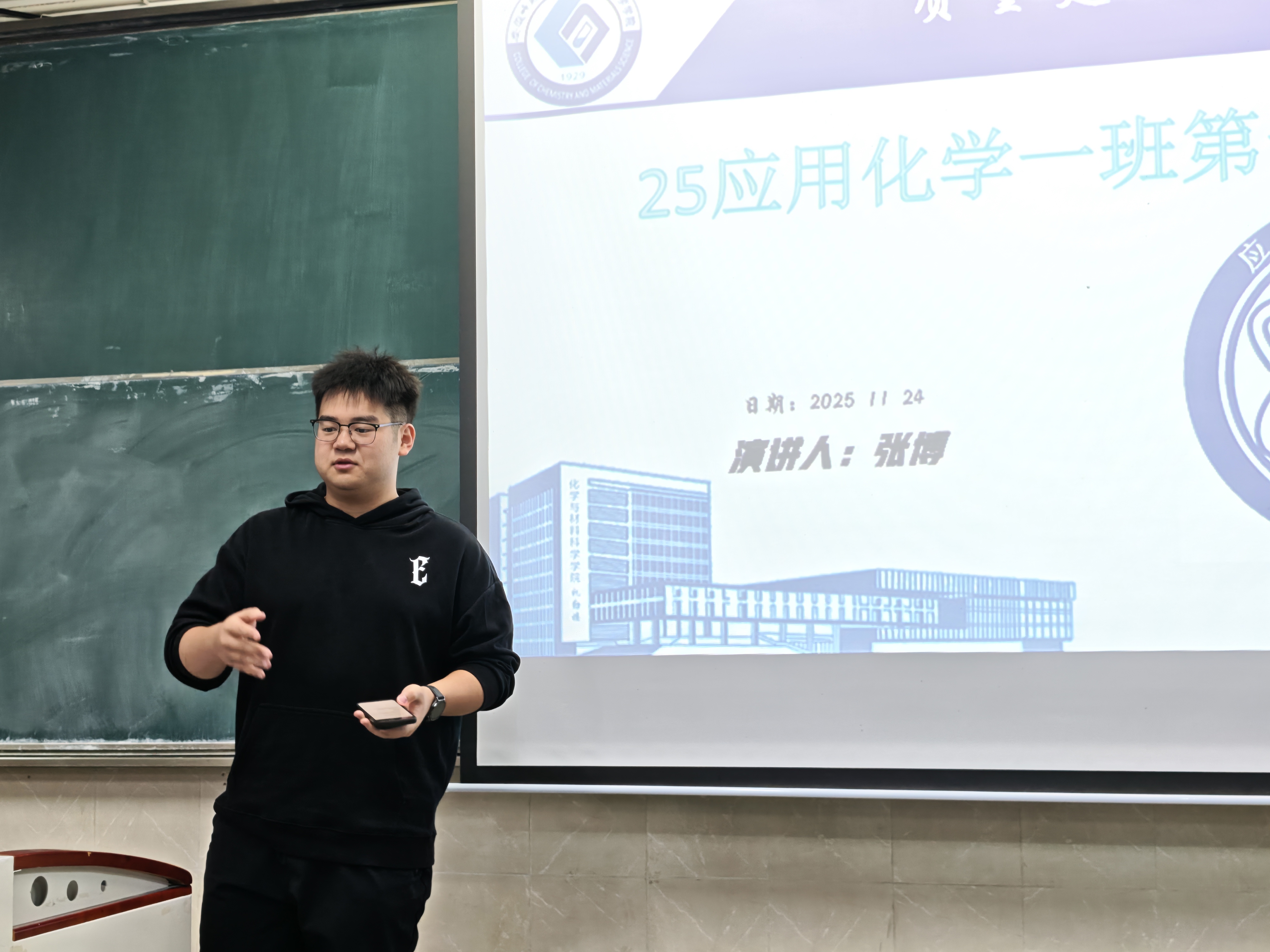 2025级应用化学1班于行知楼1号楼503教室召开期中学情分析会。会议由班长张博和学习委员乔晨熙共同主持,班级全体同学参加。