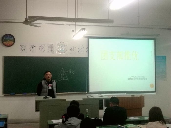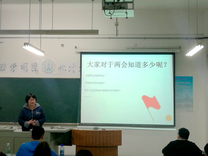 本网讯(2018级化学(非师范)专业 陈浩天)3月20日晚,化学(非师范)专业在行知楼7栋304室开展了两会学习主题班会,并进行了团支部推优。班会由团支书徐千千,班长樊远路共同主持,班级全体同学及辅导员程紫丹老师共同参加了本次班会。 班会伊始,团支书徐千千带领同学们观看了2019年两会的相关视频,结合视频介绍了两会的由来,以及两会的作用及意义。徐千千同学对比了历届两会,指出了两会制度是在不断完整和发展的,全国人民代表大会和中国人民政治协商会议是具有重要意义。同时和同学们普及了两会的相关知识,同学们通过问答的方式,了解到了两会进行的时间、两会代表的职能及作用,最后,同学们一起讨论了两会的热点问题,并发表了自己对这些问题的看法。通过这次两会知识的学习,使同学们对两会有了全新的认识,也拉近了同学们与两会之间的距离。 程紫丹老师对班级同学做了入党教育。他强调入党不是利益,是责任;不是索取,是奉献;不是口头,是行动。同时,程紫丹老师结合马斯洛需求层次理论及自身的成长经历,教育同学们要在祖国的建设中实现自己的人生价值。 随后,班长樊远路主持进行了团支部推优活动,周美昱、徐千千、周欢、王旭、陈婕妤、王梦哲六位同学依次上台介绍了自己对党的认识以及学习历程。六位同学结合自己的人生经历,真诚的表达了自己想要积极加入党组织的愿望,精彩的演讲也得到了同学们的支持与掌声。经过投票决定,同学们推选出徐千千、周美昱、周欢、王旭、王梦哲五位同学参加入党积极分子培训班的学习。