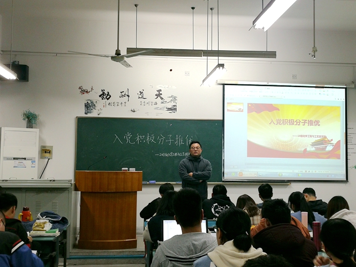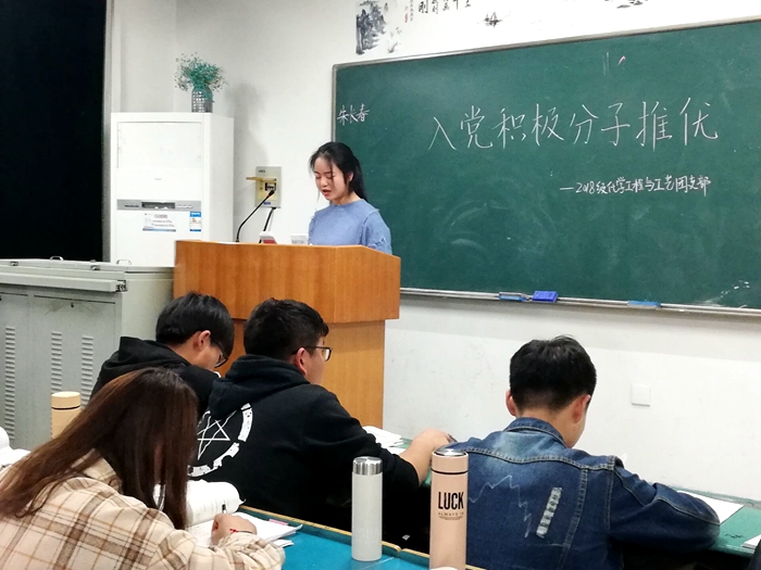 本网讯(2018级化工专业 胡雨虹)3月19日周二晚,2018级化工专业进行了入党积极分子推选活动及两会主题的班会。 班会开始前,程紫丹老师对班级同学做了入党教育。他强调入党不是利益,是责任;不是索取,是奉献;不是口头,是行动。同时,程紫丹老师结合马斯洛需求层次理论及自身的成长经历,教育同学们要在祖国的建设中实现自己的人生价值。 两班共有十二名同学参与入党积极分子推选,每位同学准备了申请书,上台演讲,内容真实,态度诚恳,发挥的都很出色。演讲完毕之后,由全体同学投票,班委进行唱票。过程公正透明,结果当晚公开。 七名同学成功入选,参与本次入党积极分子培训班的学习。辅导员同时鼓励其他同学向入党积极分子学习,继续努力,争取下次入选。 推选活动结束后,团支部又紧跟时事,开展了以两会为主题的班会。班会上,班委播放了两会内容汇总的视频,以并着重了解了有关教育改革的提案,总结了“两会金句”。同学们对两会的内容理解得更加深刻,对国家近年来所作出的成就更加了解,对党的信念更加坚定。相信各位同学在未来会更加踊跃的参与团建活动,表现得能更加优异。