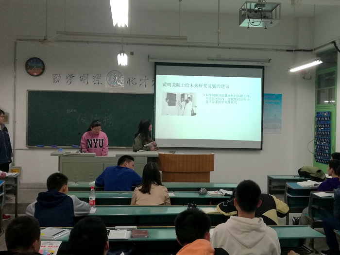活动伊始,主讲同学依次介绍优秀的化学界前辈。操磊同学介绍了我国著名的化学家徐光宪,使同学们大致了解了这位科学院院士的生平经历,以及其在化学界取得的令人瞩目的成就;接着王旭、水泉和陈婕妤等同学分别介绍了侯德榜、黄鸣龙等优秀化学家。同学们经过精心准备,通过生动的演讲,将这些优秀前辈的故事展现给大家。通过此次优秀化学家的介绍,使同学们了解到了化学界的榜样人物,并从他们身上学到了许多可贵的品质;同时也锻炼了同学们的演讲能力,使同学们敢于走上讲台,展示自我。