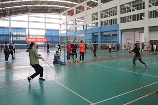 此次比赛分为男单、女单,男双、女双和混双三类项目。随着各方参赛人员到达各自的比赛场地,激烈的角逐正式开始。单打注重考察自身实力,二人对战,只见球在分隔线间来回穿梭;双打则需考察合作能力,赢得的不仅是技术,更是搭档的默契配合。参赛者们飞扬的身影尽显青春的热力,那一阵一阵的击球声如鼓点般将诺大的场馆震慑沸腾。场面激烈壮观,在场观众屏息凝神,目光追随着羽毛球的来回跳跃,精彩之处,更是掌声四起。从小组赛到半决赛、决赛,比赛一场比一场精彩、一场比一场激烈,参赛选手们在汗水中绽放了青春光彩。