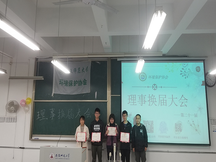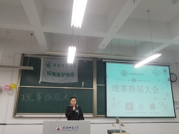 白驹过隙,时光飞逝,又是一年换届时。12月2日上午9点,安徽师范大学环境保护协会的理事换届大会活动在行知楼2070201如期举行。出席此次换届大会的有卡通色情 关工委副主任、环境保护协会指导老师宫世国、环境保护协会现任会长郭泽宇、现任理事长吴琼。 大会以文艺部带来的《相亲相爱一家人》拉开序幕。动听的歌声后,环协八个部门依次通过PPT的形式向大家介绍了部门概况以及留任部员信息,并为新任理事颁发聘书。一张张精美的图片,一段段积极飞扬的音乐,还有创意独特的宣传片,在场的同学们不时发出阵阵赞叹与掌声。随后又进行了各副会长和各部长聘书的颁布。接着,宫世国老师为新任会长郭泽宇、新任理事长吴琼颁发了聘书。郭泽宇上台发言,表达了对各理事的感谢,希望能与大家共同促进协会未来的发展。之后新任理事代表杨志发言,表达了对环协真诚的祝福,说出了在场理事的心声。大会最后,由宫老师作为指导老师上台,提出了他寄予协会的希望以及未来一年里工作的指导。他还指出了习近平主席对于生态环境的保护十分重视,提醒协会的成员们要勿忘初心,坚持环保。大会圆满结束。 此次换届大会为协会招募了新生力量。长江后浪推前浪,一届新人换旧人。协会能走到今天,离不开一届届环协骨干的积淀以及一位位满怀希望,心系环保的同学们加入。一日环协人,终生环保梦,环保尚未成功,同学仍需努力!