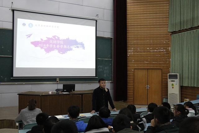 会议伊始,学生会主席王慧首先进行了工作总结,她以“学生会是什么样的组织,应该成为怎样的学生干部”的问题作为引入,希望学生会成为一个全心全意为广大同学服务的组织,一个运转效率高、工作要求高的组织,一个强有力的能干好、能干成大事的组织。接着她简要总结了本学期学生会各部门完成工作情况,并提出了建议和工作展望。随后,王慧结合学生会的暑期社会实践活动,通过分享前两届学生会干部的志愿服务经历,为全体新成员展现了化材学生会一贯的精神面貌,并为今年的支教做好了预热。会议末尾,学生会指导老师王国良作了总结讲话,他提出了三个关键词“感谢”“期望”和“怀念”。他首先代表学院团委对学生会在上半学期工作上的用心付出表示了感谢,并对全体成员提出了“学习”、“能力”和“态度”三个方面的要求,希望全体学生会干部在学习上能守住底线、提高上限,在能力上能学有所得、劳有所获,在态度上能以身作则、从一而终。“现在,青春是用来奋斗的;将来,青春是用来回忆的”,最后,他引用了习近平总书记的寄语与大家共勉,并希望学生会全体成员能够不负韶华,在学生会留下一段值得怀念的时光。