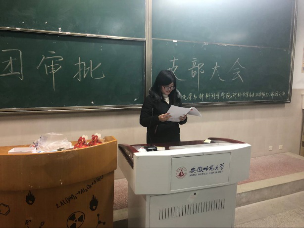本网讯(18材料化学二班 杨良智)2018级材化二班于2018年12月27日在2030103教室召开第二次团支部大会。本次支部大会主题为新成员王欣同学入团审批,由团支书张强主持。 大会开始,全体与会人员合唱共青团团歌。雄壮悠扬的歌声,点燃了同学们的爱国情怀,拉开了本次入团审批支部大会的帷幕。接下来,班长张勋向同学们介绍了新团员王欣同学。王欣同学品学兼优,对中国共青团怀有崇高的敬意和真挚的向往,深深地打动了在场的全体同学。在投票表决中,王欣同学以全票通过,0票反对,0票弃权的决议正式成为了一名共青团员。 在这之后,王欣同学发表了成为共青团员的感言,立誓遵守团的章程,维护团的纪律,为共青团,为整个社会主义建设献出自己的一份绵薄之力。大会的最后,副班长殷佳伟作为老团员代表对王欣同学的入团表示隆重欢迎,并真挚地祝愿王欣同学能够勉励自身,更上一层楼。本次入团审批支部大会在热烈的掌声中画上了圆满的句号。