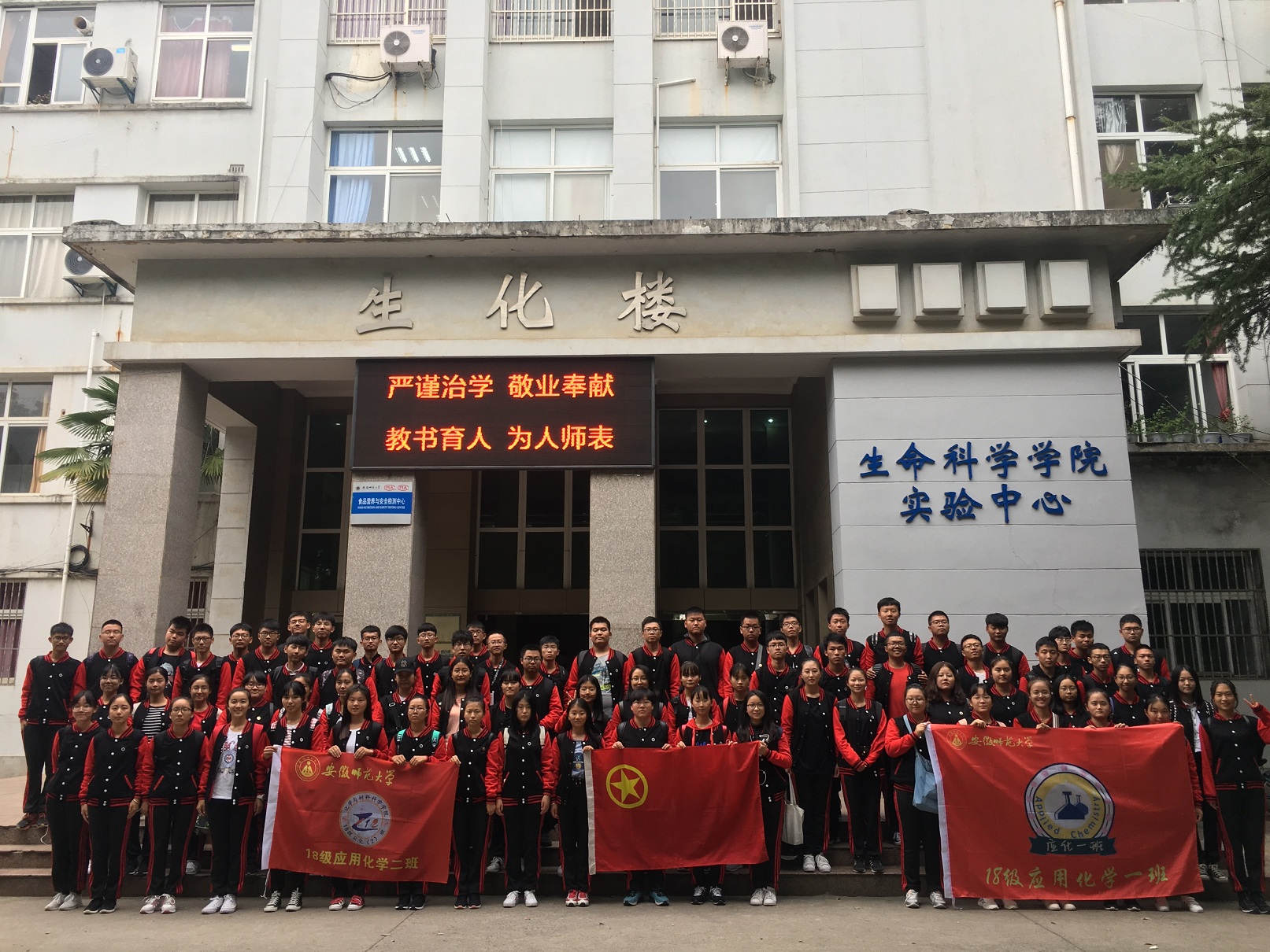 从烈士陵园离开后,我们转身来到了安徽师范大学赭山校区去寻找化材院最原始的样子,我们校园里寻找着化材院曾留下的足迹,这次寻根之旅不禁让我们感叹化材院身为一个建院已久院系的深刻内涵,化材院的悠久历史令应化学子引以为傲,我们也有信心为它的未来填上绚烂的一笔。