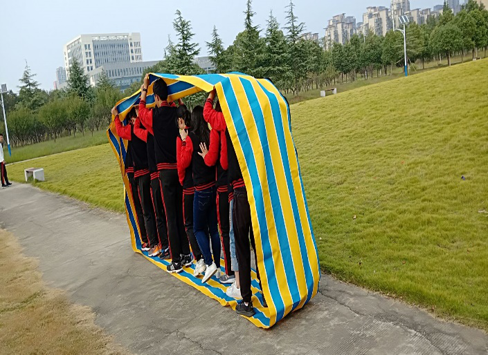 一个车轮带游戏瞬间将大家的活动热情点燃了,磕磕绊绊的行走,考验着默契的配合;拼搏不放弃,体现的是大家不服输的意志。第二个游戏接力赛,首先两人夹气球前进,第二棒大象鼻子转圈,那晕眩的步伐让大家捧腹大笑,紧接着跳绳、端着盛满水的被子前进。最后投掷沙包便是“三分天注定,七分靠打拼”。最后一个踩气球更是将活动引入高潮,辅导员也加入了这场大战之中,有踩爆自己气球的,也有被围攻的。一场活动迅速的将班级凝聚在了一起。