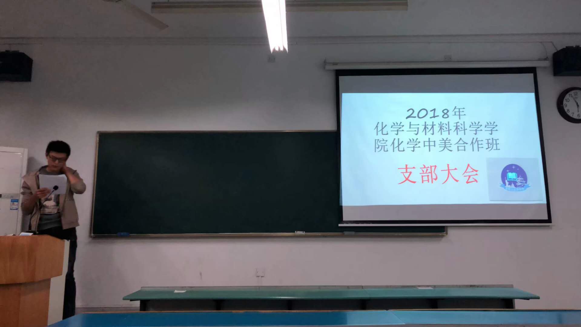 本网讯(18化学中外 尚晨妍)10月12日下午5点,2018级化学中外合作班在教室举行了第一次班级团支部大会。首先由团支书丁逸飞同学上台致辞,随后我班三个团小组组长李振威、刘静和魏妹同学分别进行了深刻的团员思想教育发言,发扬了“不忘初心,牢记使命”的社会主义精神。最后,团支书丁逸飞同学对组长们的发言进行总结,明确使命,坚定信念,激励大家继承和弘扬共青团的光荣传统。
