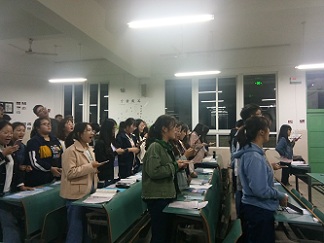 最后,在文娱委员彭文婷的领歌下,我班全体成员起立演唱了《中国共青团团歌》,激昂的乐声代表了全体成员坚定的决心----爱国爱党,也传达出了材料化学一班全体成员的精神面貌。