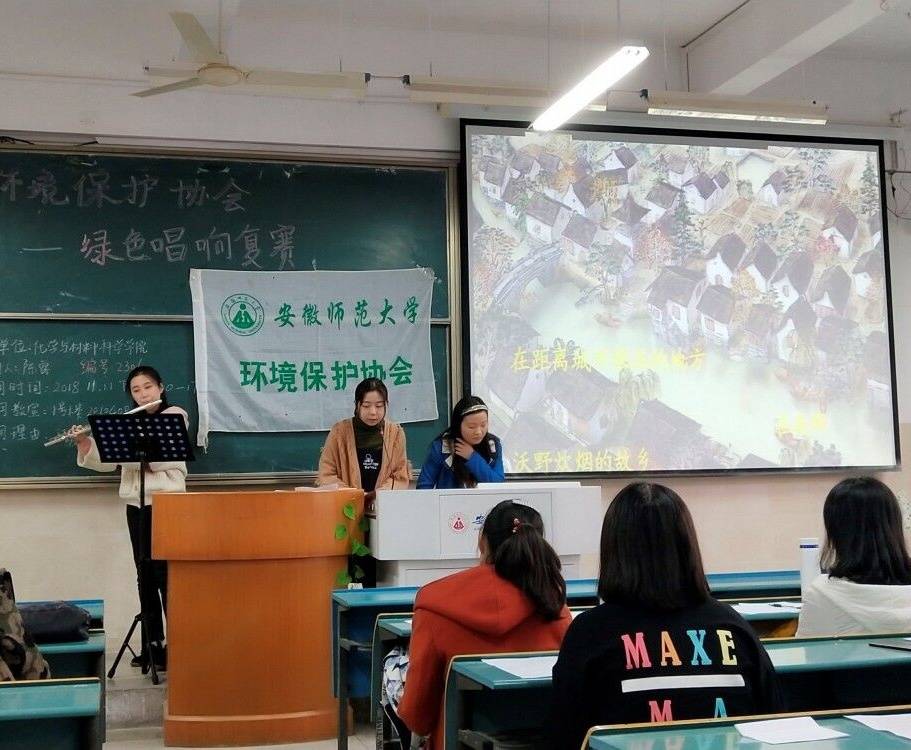 本网讯(卡通色情 环境保护协会)弘扬绿色文化,传递环保精神。11月18日下午,由环境保护协会主办的第六届绿色唱响歌曲决赛如期在花津校区理科大楼报告厅举行。协会指导老师荣菁秋、卡通色情 18级辅导员陶勇等、环境保护协会会长郭泽宇以及其他兄弟协会负责人代表应邀担任决赛评委。本次比赛分为初赛,复赛和决赛三个阶段。在每场比赛中,选手们都激情四射,用歌曲表达了他们对于环境保护的热爱。