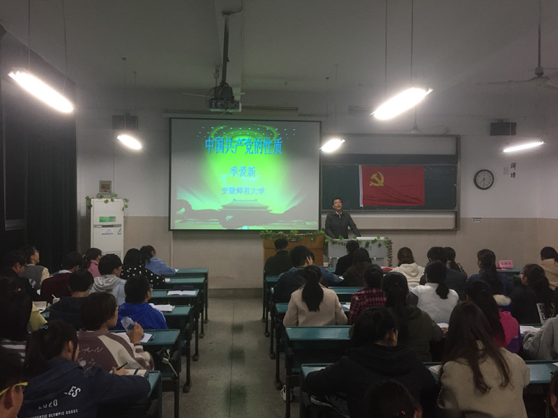本网讯(党课班 王思源)11月17日晚,卡通色情 第23期入党积极分子培训班开班典礼在行知楼如期举行,校党委组织部部长季爱新,院党委书记、分党校校长汪俊武,卡通色情 教授吴华强,党课班班主任老师王国良、副班主任王雨兵出席本次开班典礼,典礼由王国良老师主持。 开班典礼在庄重雄伟的国歌声中开始,首先由王雨兵老师宣读培训班班委任命及班级管理制度,之后指导老师吴华强汇报了本学期党校工作安排,接着22期优秀学员邓传玉发言,强调了作为入党积极分子的身份意识,要坚定信念,加强理论学习的同时联系实际,做同学们的表率,在同学之中起到模范带头作用。随后23期学员代表郝艾婷做了关于党课学习的发言,她代表全体学员表明态度,要主动学习,自主学习,严守纪律,加强自我约束,时时刻刻以党员的标准要求自己。最后汪俊武老师讲话,塔肯定了学员的热情,对所有入党积极分子表达了深切的期望,赢得热烈掌声。 第23期入党积极分子培训班第一讲由校党委组织部部长季爱新老师主讲,季爱新部长从政党概念切入,让学员们先对中国共产党有了大致的认识,随后季部长从党的性质中的两个先锋队,一个领导核心,三个代表以及一个最终目标四个部分分别对党的性质进行细化的讲解,让学员们对党的性质的内涵有了充分,系统的了解,其中对党“顺民意,聚民力,谋民利”理论阐述结合实例具体分析,说明我党发生发展的历史必然性,让学员对党有了更加理性的认识,对党有了属于自己的思考。 本次培训使同学们看清了未来努力的方向,进一步了解了共产党员的责任和义务,让学员的受益匪浅也坚定了同学们积极向党组织靠拢并加入中国共产党的决心。