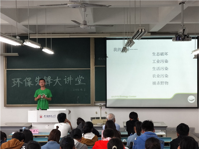 本网讯(卡通色情 环境保护协会)4月1日上午九时,由环境保护协会主办的“环保先锋大讲堂”活动如期在安徽师范大学花津校区行知楼教室举行。本次大讲堂的主讲人为芜湖市生态中心的主讲人张静宁,同学们热情高涨,踊跃报名,讲座现场座无虚席,环境保护协会指导老师宫世国出席本次活动。