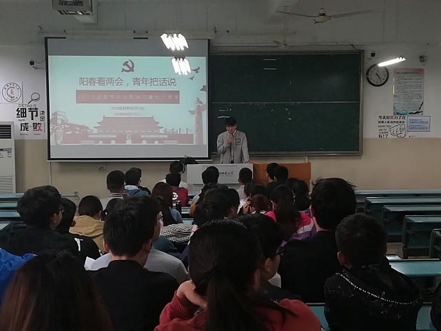 本网讯(卡通色情 陶勇 邱露纯)春风和煦吹万物, 碧水清潭涟水漪。为扩展同学们的时事视野, 营造关注时事动态、关心政策走向的良好学习氛围,卡通色情 16级材料化学1班全体同学于2018年4月13日在2010302教室开展了主题为“阳春看两会,青年把话说——2018全国两会专题学习暨知识竞赛”主题班会,会议由实习辅导员陶勇老师主持。 会议伊始,陶老师向同学们强调了本次活动的主题是学习“两会”精神,并简要介绍了今年两会的主要日程安排。接着,他又分别从关键年份、修改宪法、领导人换届、改革开放、经济高质量、监察立法六大关键词带领同学们一起了解了“两会”的重要性。他在台上认真为大家进行讲解,台下的同学们个个都屏气凝神专心致志地听着。随后,陶老师与同学们一起对两会中的热点问题进行了重点讨论,并对往届“两会”网民关注的十大问题以及政府工作报告做了相关了解与分析。研讨过后,陶老师组织同学们开展了一场以“两会”内容为主知识竞赛,通过趣味问答的方式加深同学们对于关键内容的了解。 经过此次“两会”精神的主题班会,引起了同学们对于时事政治的兴趣,达到了让同学们认真学习、宣传、贯彻“两会”精神,增强广大团员青年的历史使命感和责任感,坚定跟党走中国特色社会主义道路的信念。